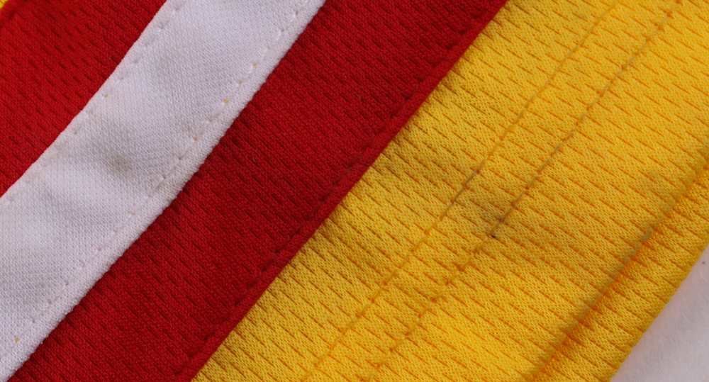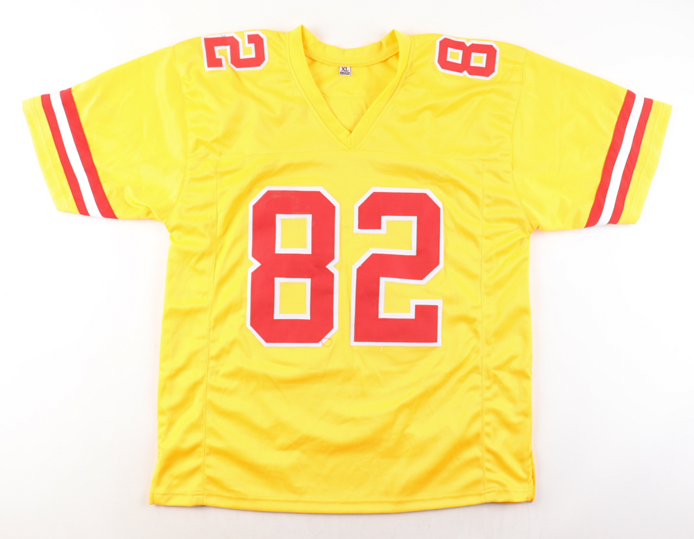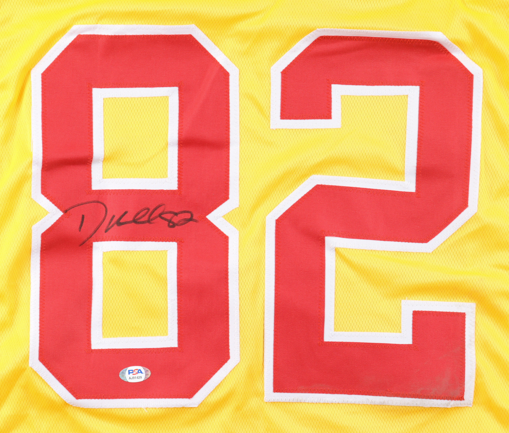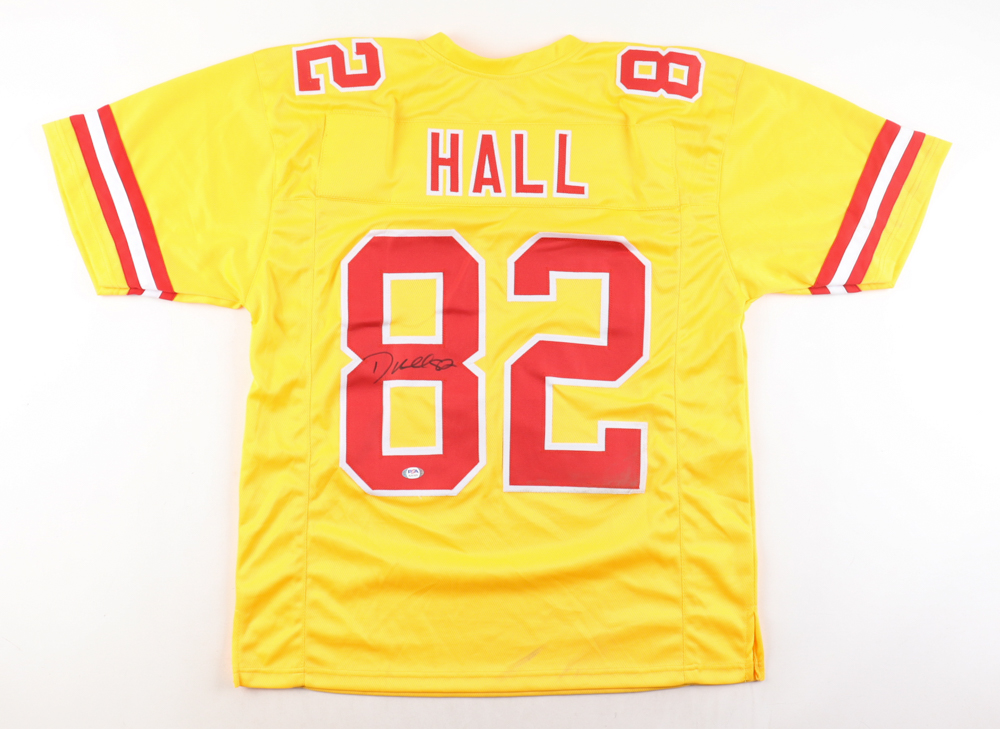 Custom jersey with everything sewn on, size XL. Hand-signed by Dante Hall. Please note, there are stains on the reverse number as well as the front and back of the jersey.
