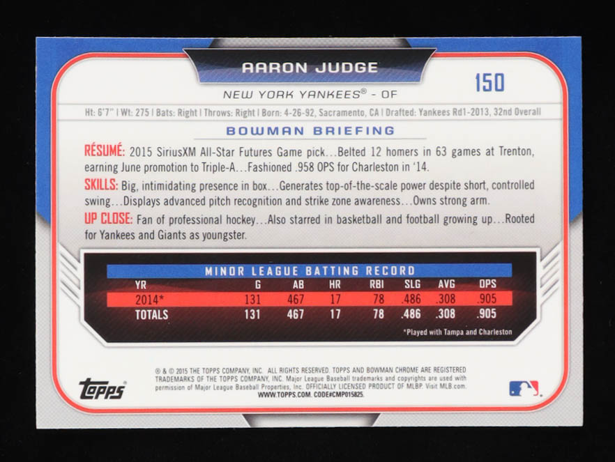 Aaron Judge 2015 Bowman Chrome Draft #150 RC