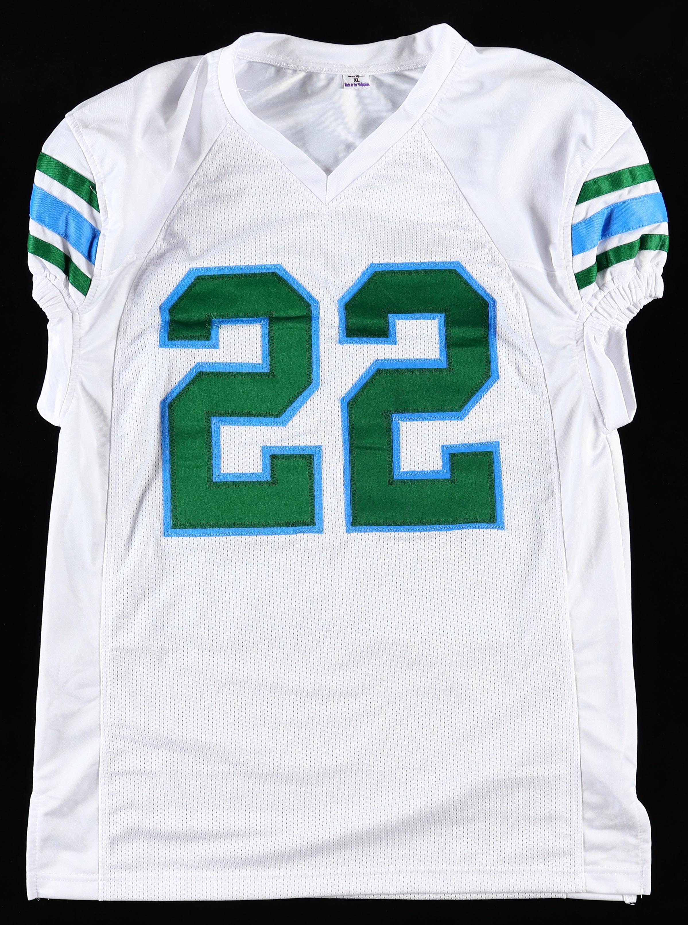 Custom jersey. Everything sewn on, size XL. Hand-signed by Tyjae Spears.