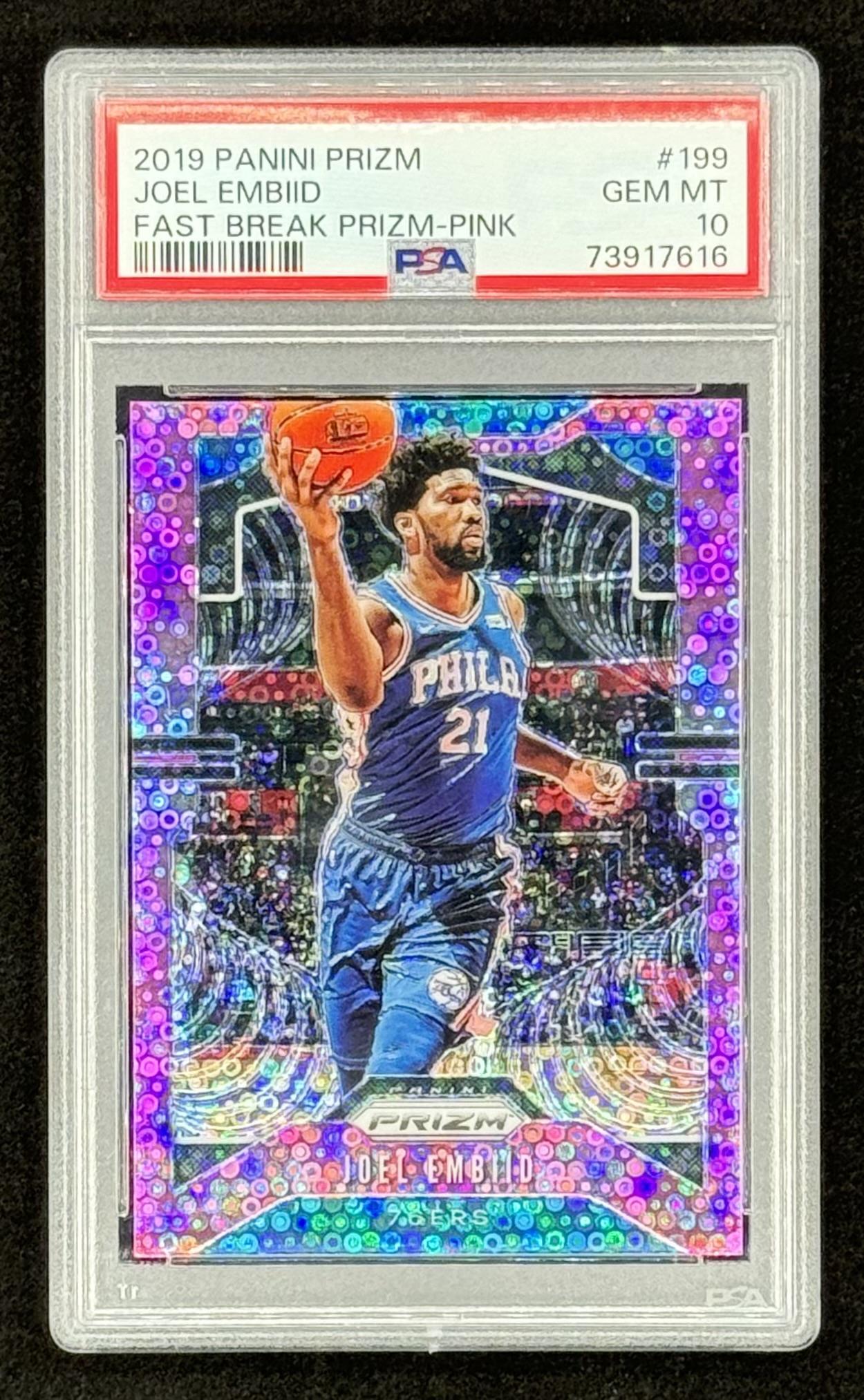 Joel Embiid 2019-20 Panini Prizm Prizms Fast Break Pink #199 #26/50 (PSA 10)