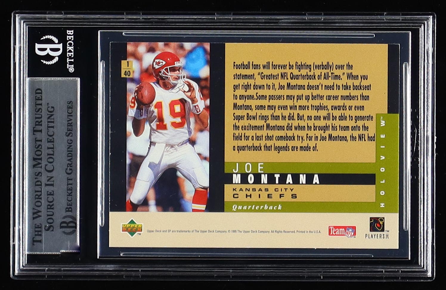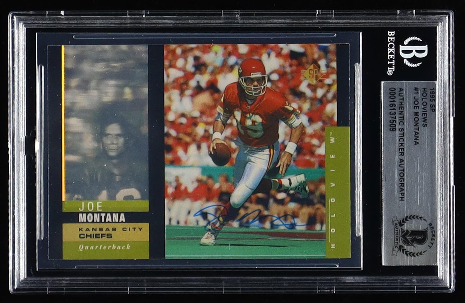 Joe Montana Signed On Sticker 1995 SP #1 Holoviews (Beckett Encapsulated)