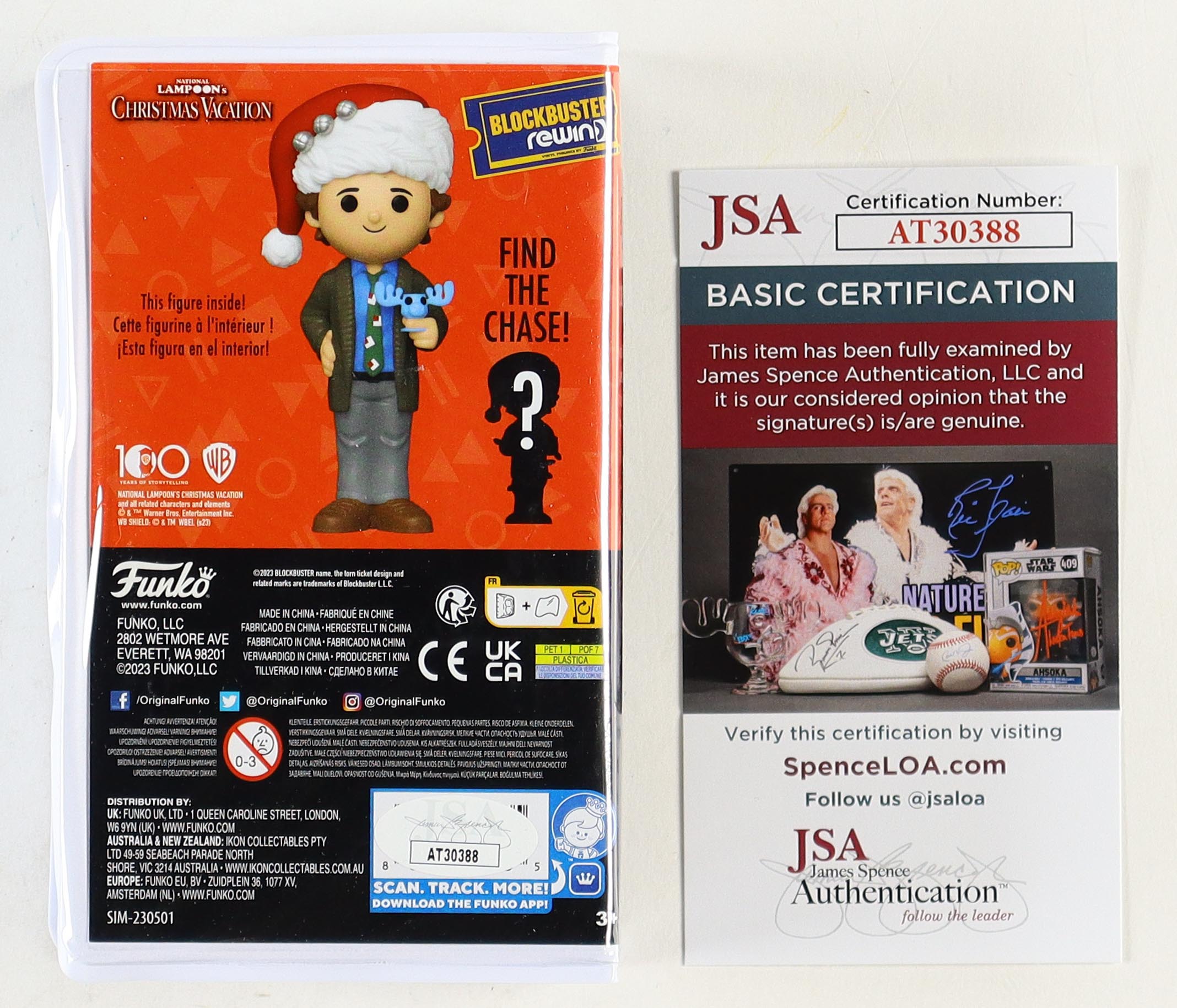 Funko vinyl figure measures approximately 4" in height and has been hand-signed on the packaging by Chevy Chase (Clark W. Griswold).