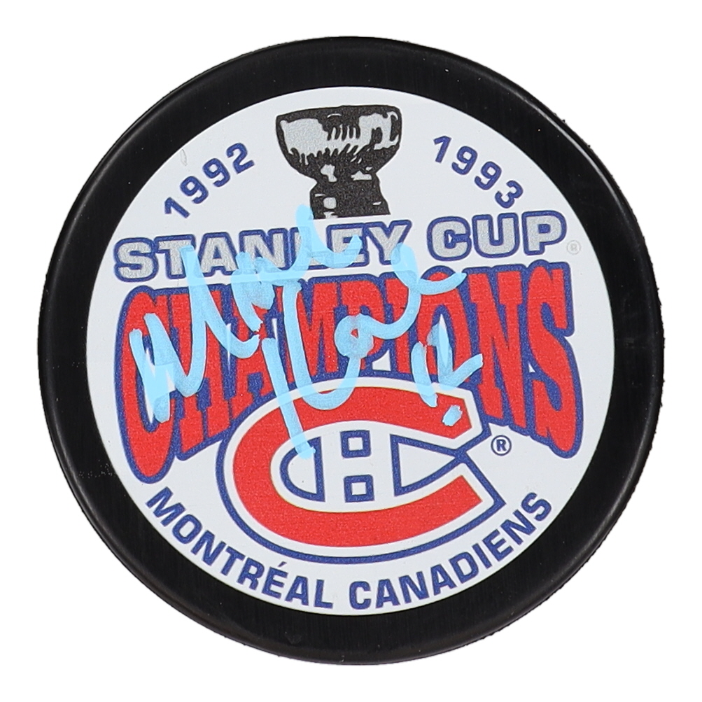 Mike Keane Signed Canadiens 1992-93 Stanley Cup Champs Logo Hockey Puck (COJO)