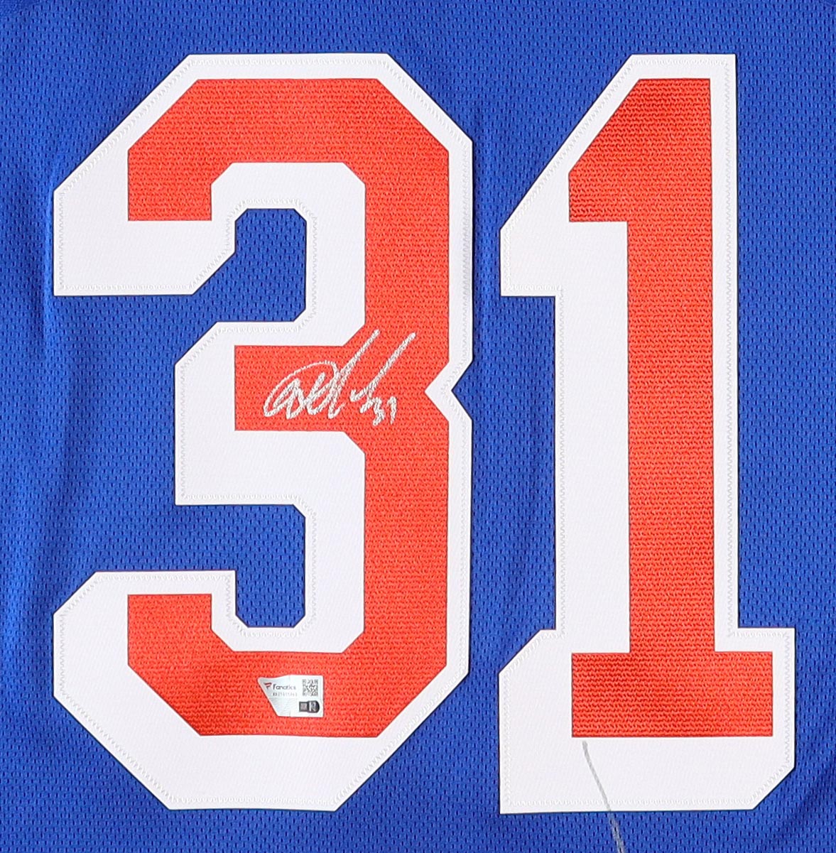 Fanatics jersey. Everything is sewn on, size XL. Hand-signed by Igor Shesterkin (New York Rangers). Please note, there is a stray pen mark below the signature.