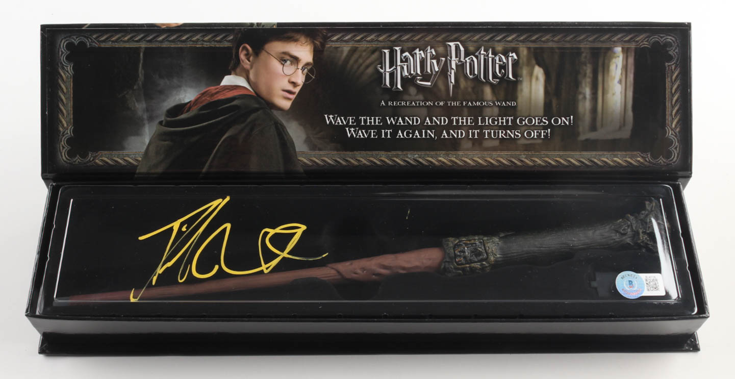 Toy wand has been hand-signed on the original packaging by Daniel Radcliffe. Please note, there is scuffing on the packaging window.