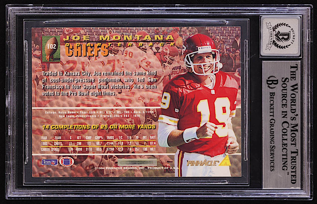 Joe Montana Signed 1994 Pinnacle #102 (BGS | Auto 10)