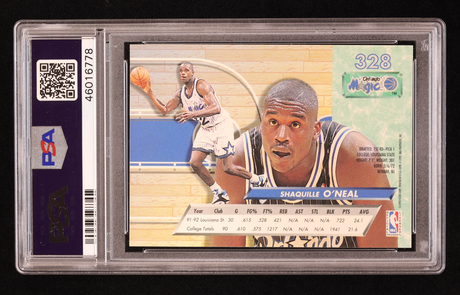 Shaquille O'Neal 1992-93 Ultra #328 RC (PSA 9)