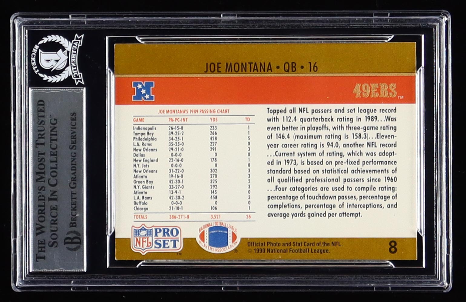 Joe Montana Signed 1990 Pro Set #8 (BGS Encapsulated)