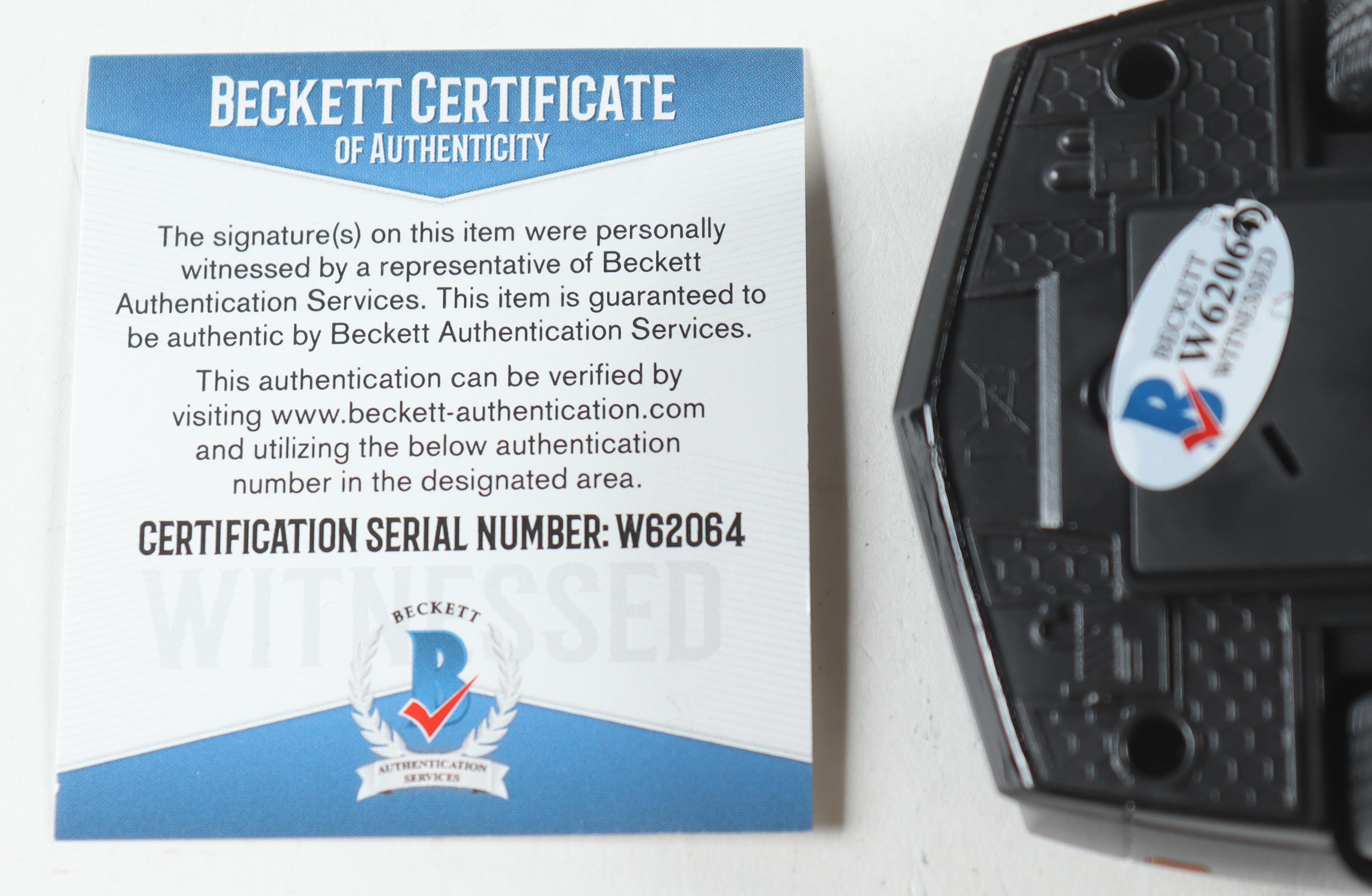 The autograph includes an official Beckett Authentication Services serially-numbered hologram and matching COA for authenticity purposes. The signing of this item was witnessed by Beckett.