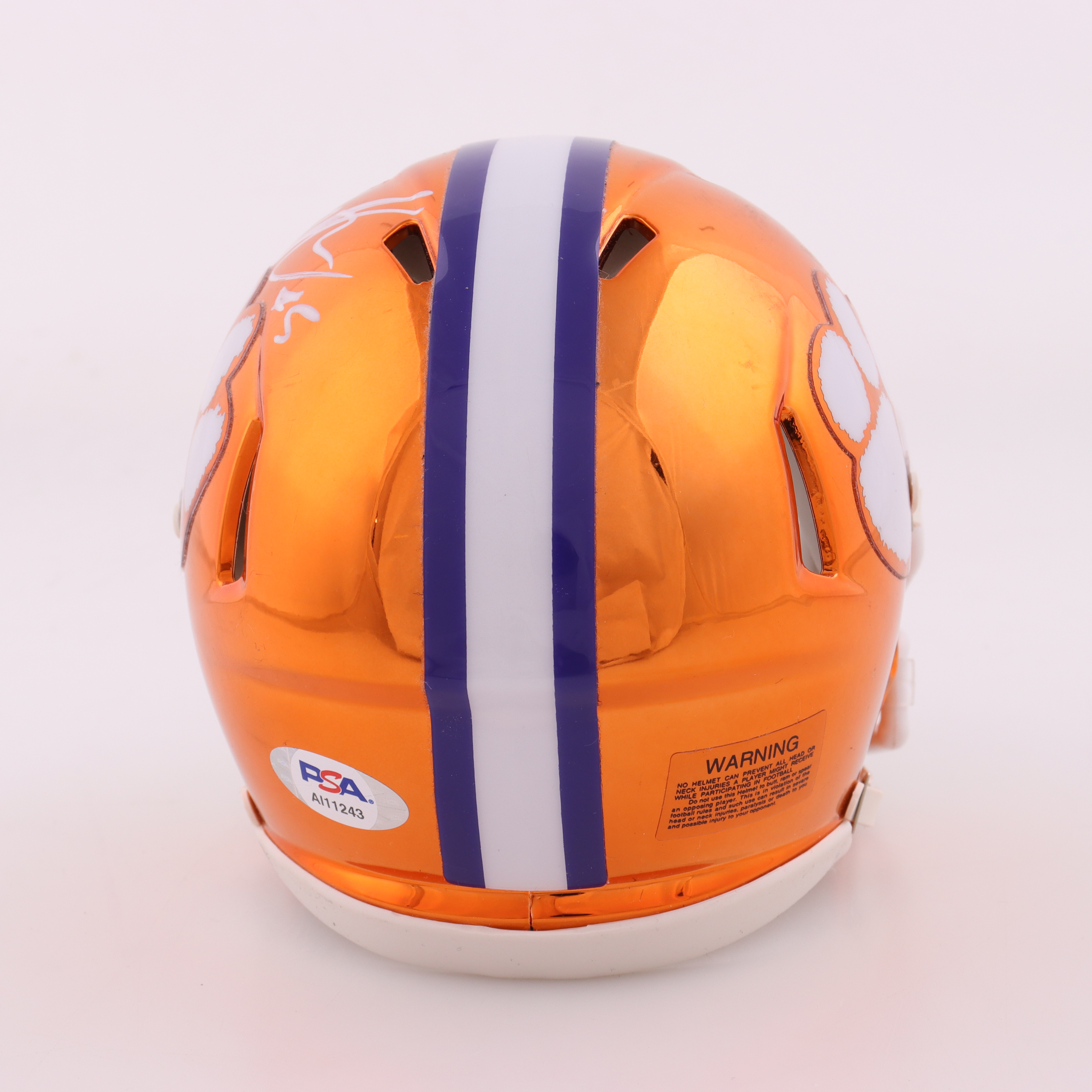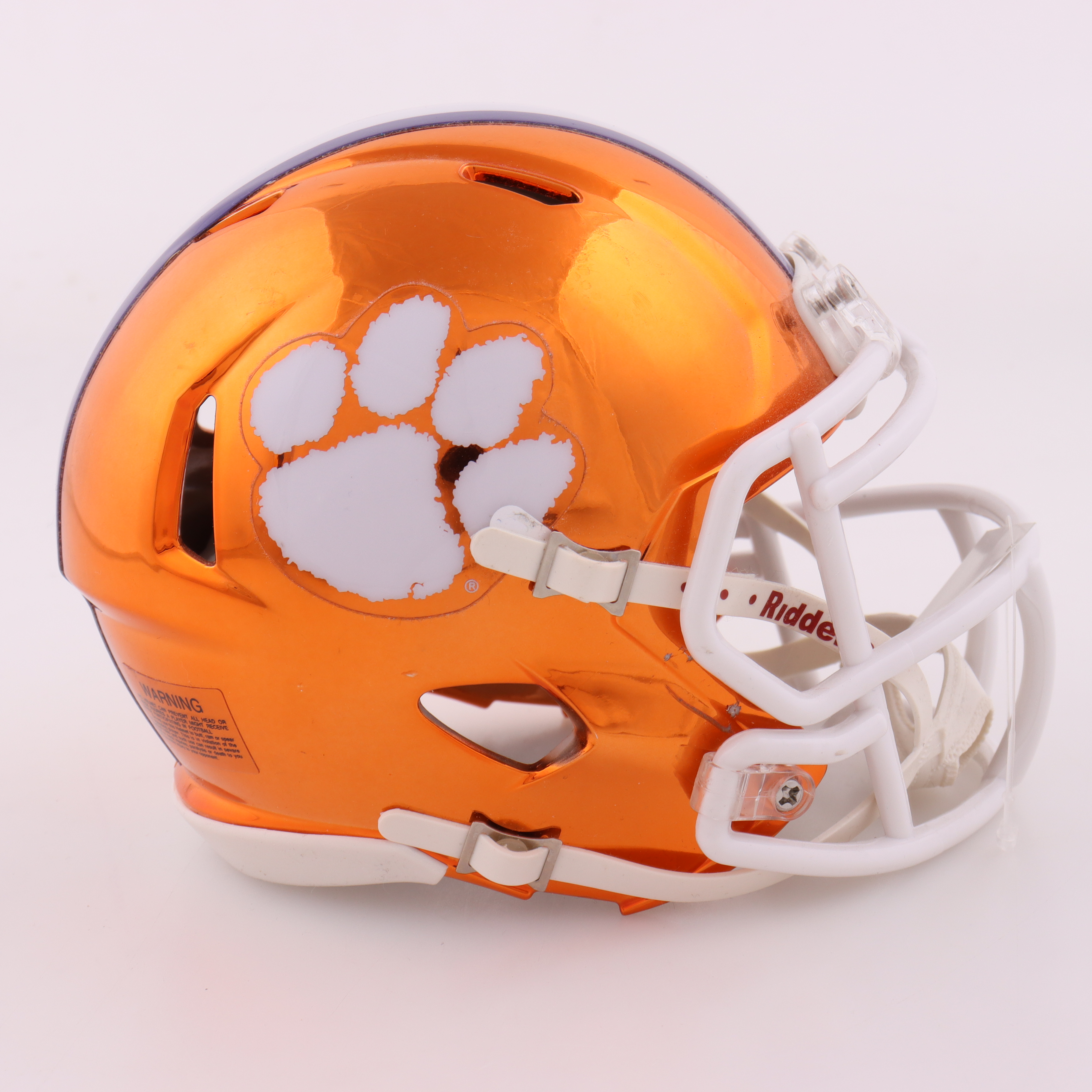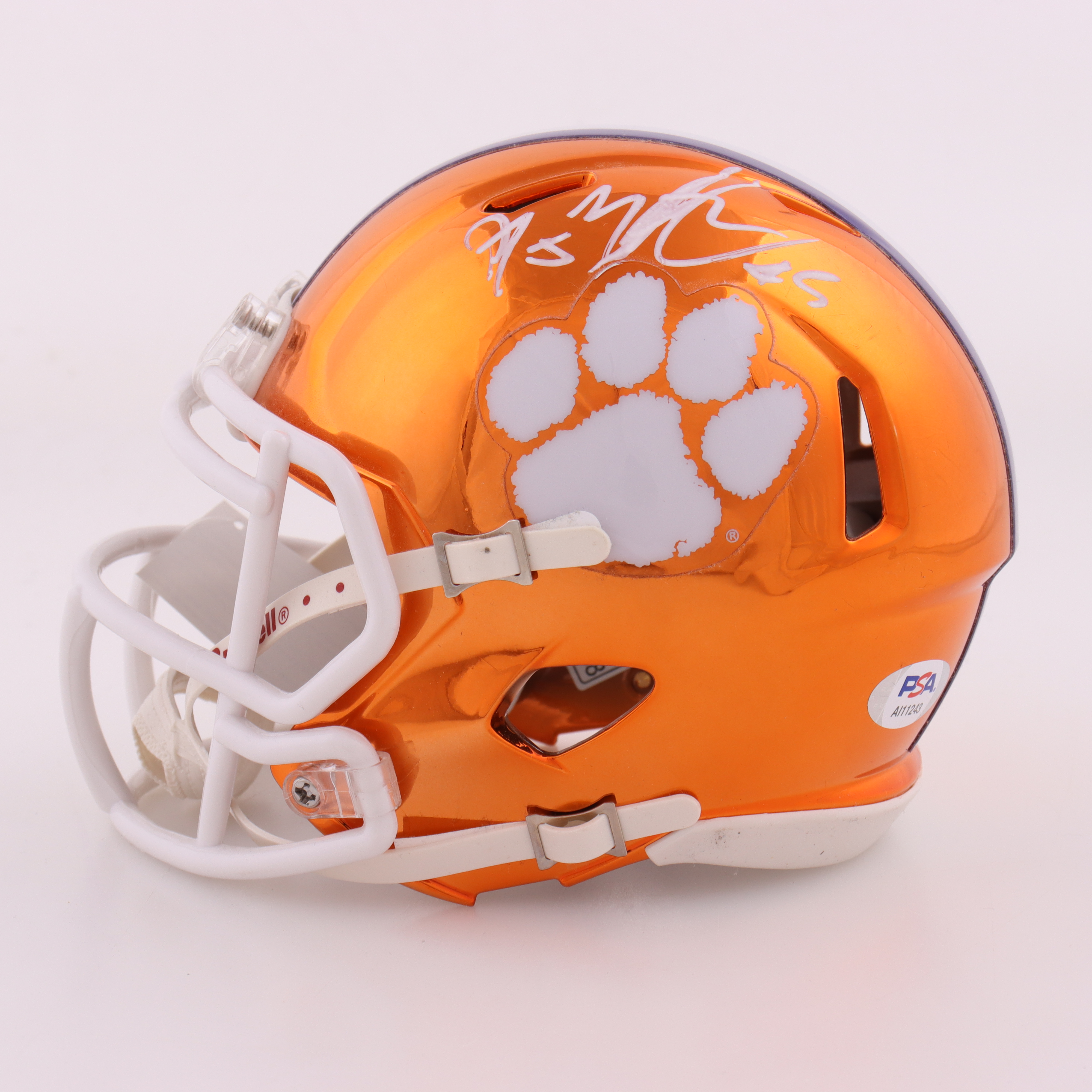 Riddell Clemson Tigers Chrome Speed mini helmet. Hand-signed by DJ Uiagalelei. Please note, there is scuffing on the helmet.