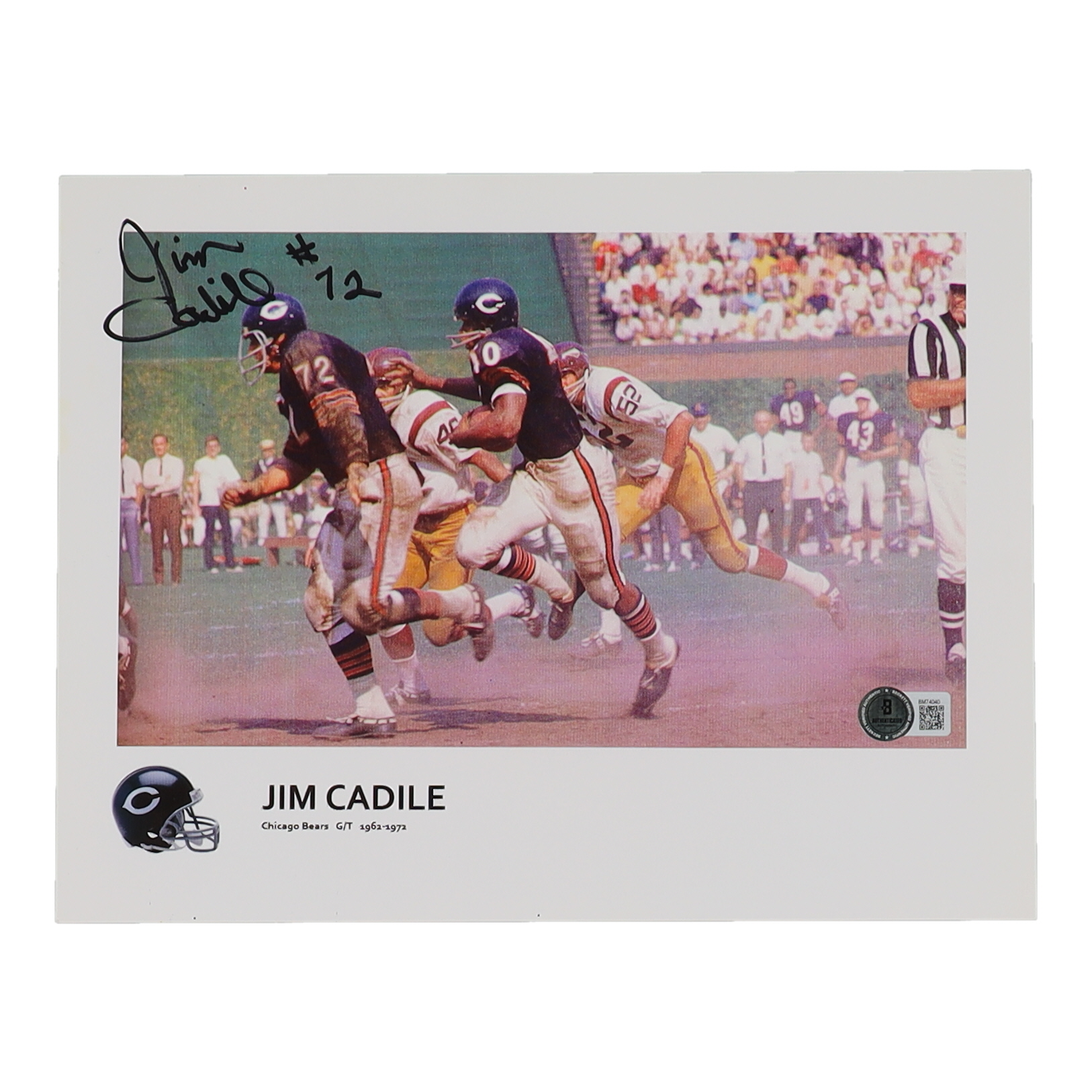Photo measures 8" x 10" in size. Hand-signed by Jim Cadile (Chicago Bears).