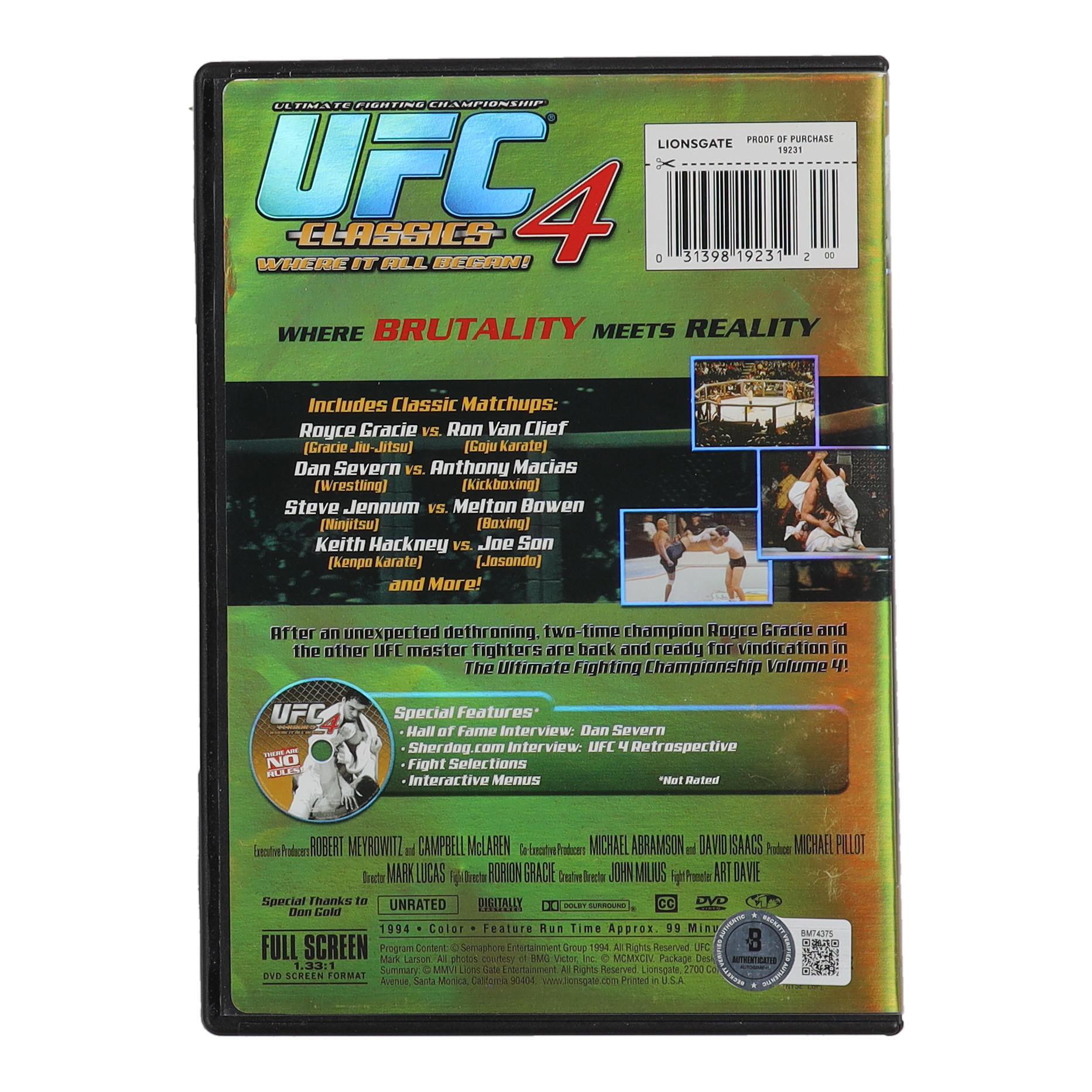 "UFC Classics 4" DVD has been hand-signed on the case by Royce Gracie (HOF).