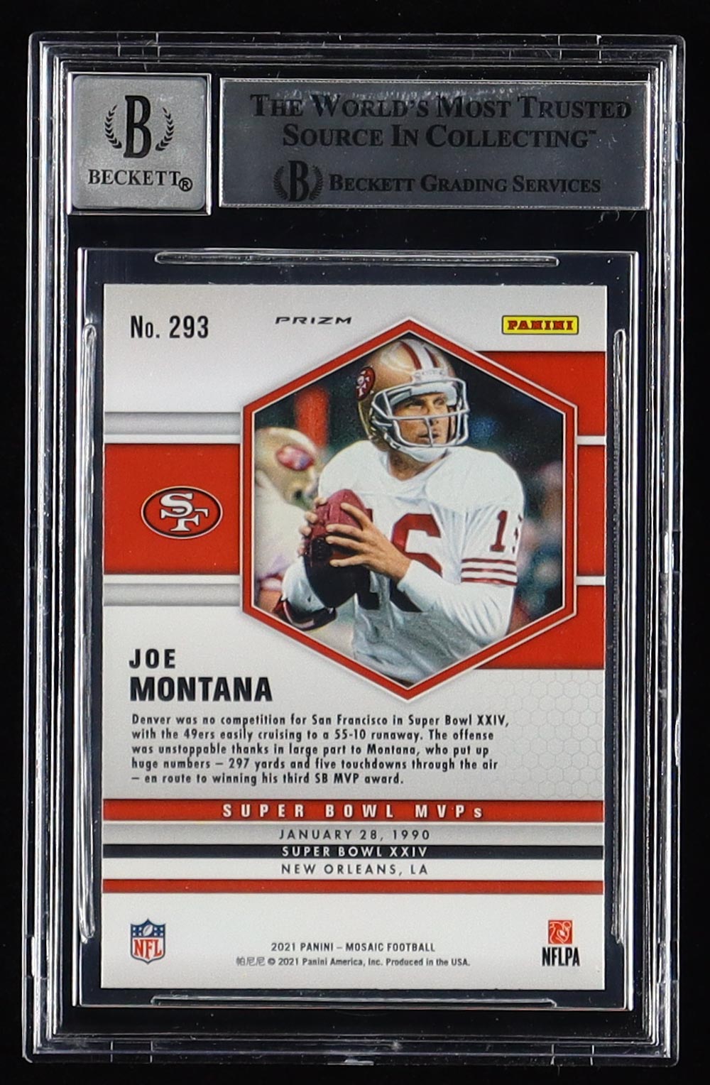 Joe Montana Signed Sticker On 2021 Panini Mosaic Mosaic Camo Pink #293 MVP (BGS | Auto 10)