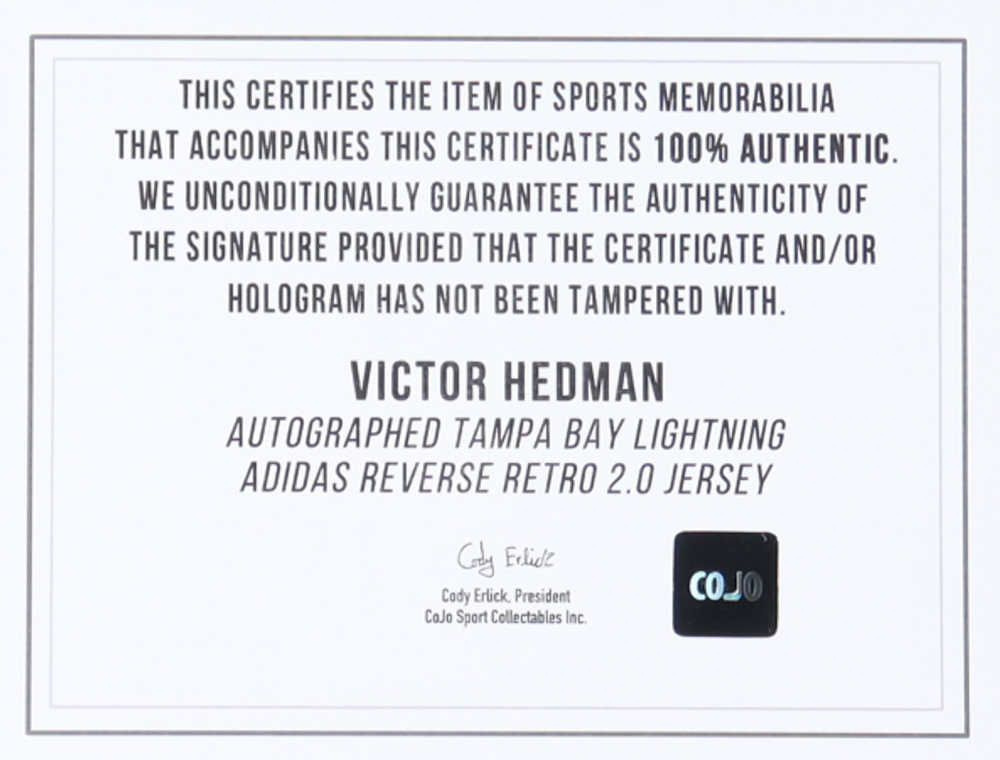 Victor Hedman Signed Lightning Adidas Jersey (COJO)