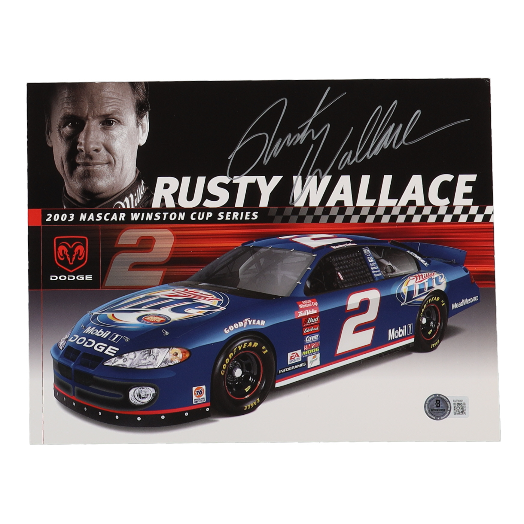 Photo measures approximately 8" x 10" in size and has been hand-signed by Rusty Wallace.