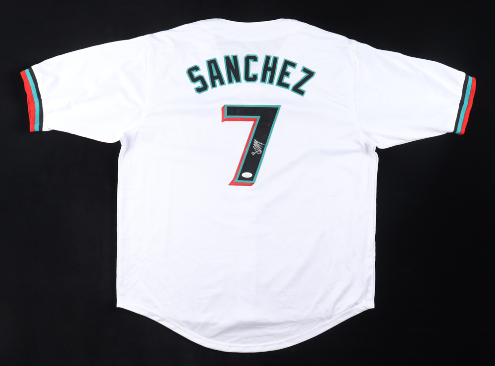 Custom jersey. Everything sewn on, size XL. Hand-signed by Jesus Sanchez.