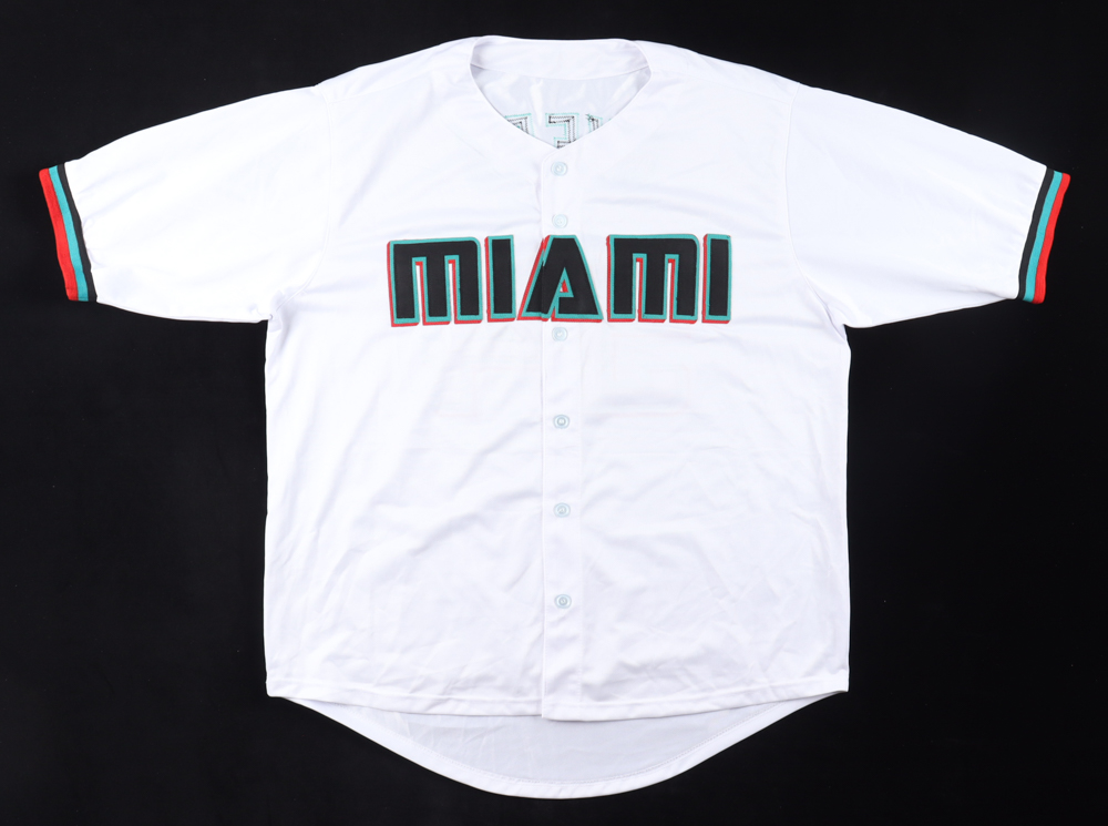 Custom jersey. Everything sewn on, size XL. Hand-signed and inscribed by Dane Myers Please note, there is a stain to he left of the reverse number.
