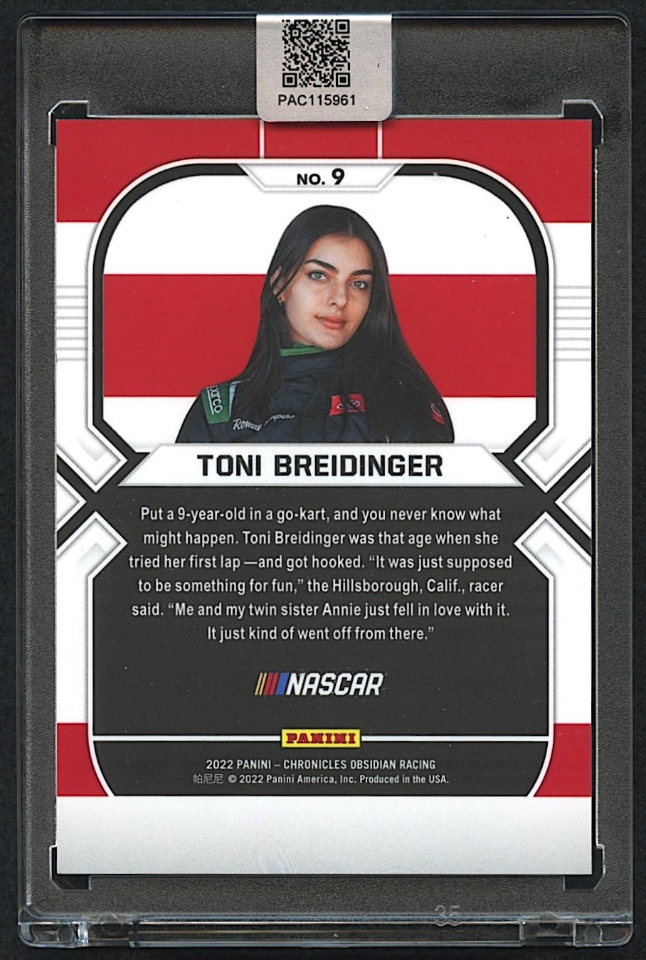 Toni Breidinger Signed 2022 Panini Chronicles Obsidian #9 RC (PA Encapsulated)