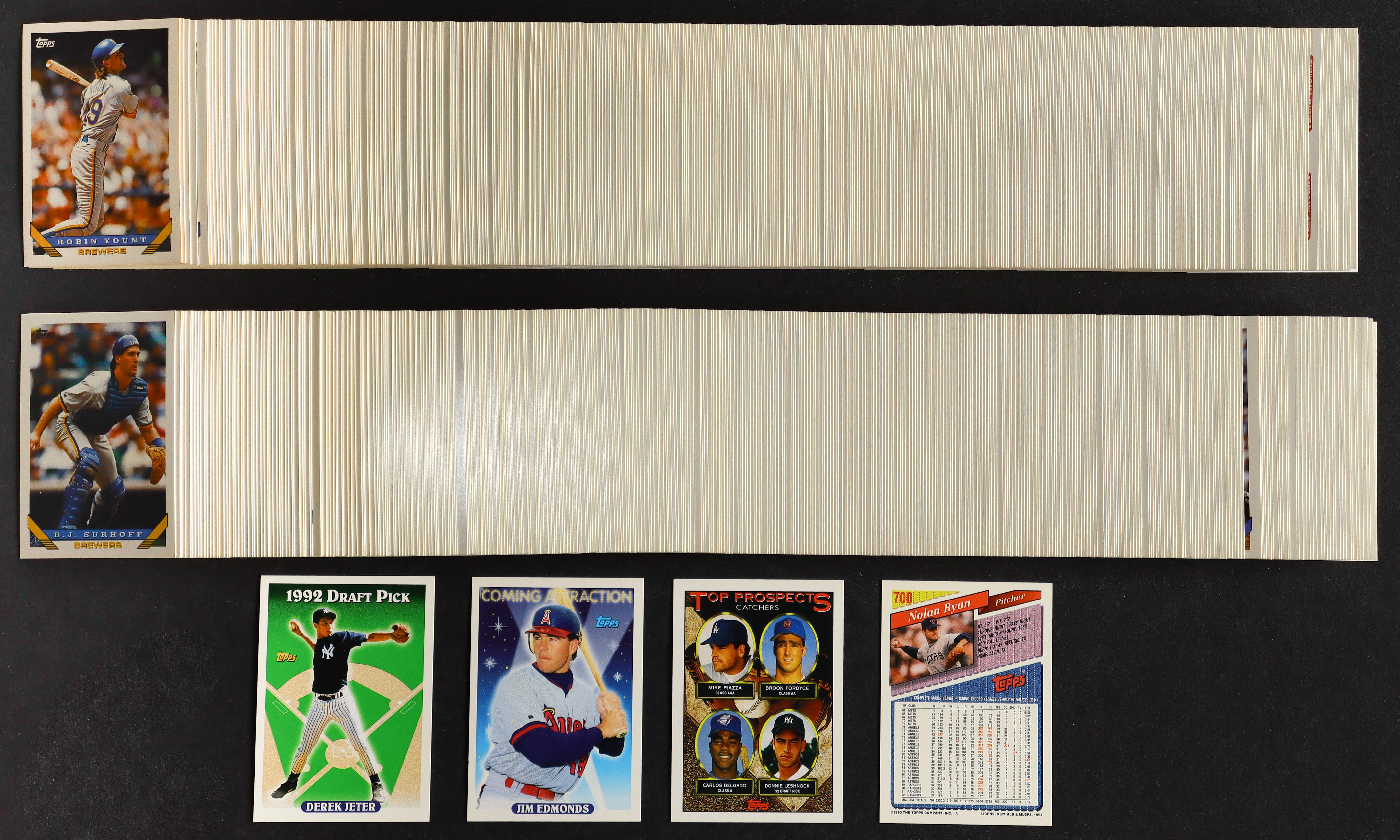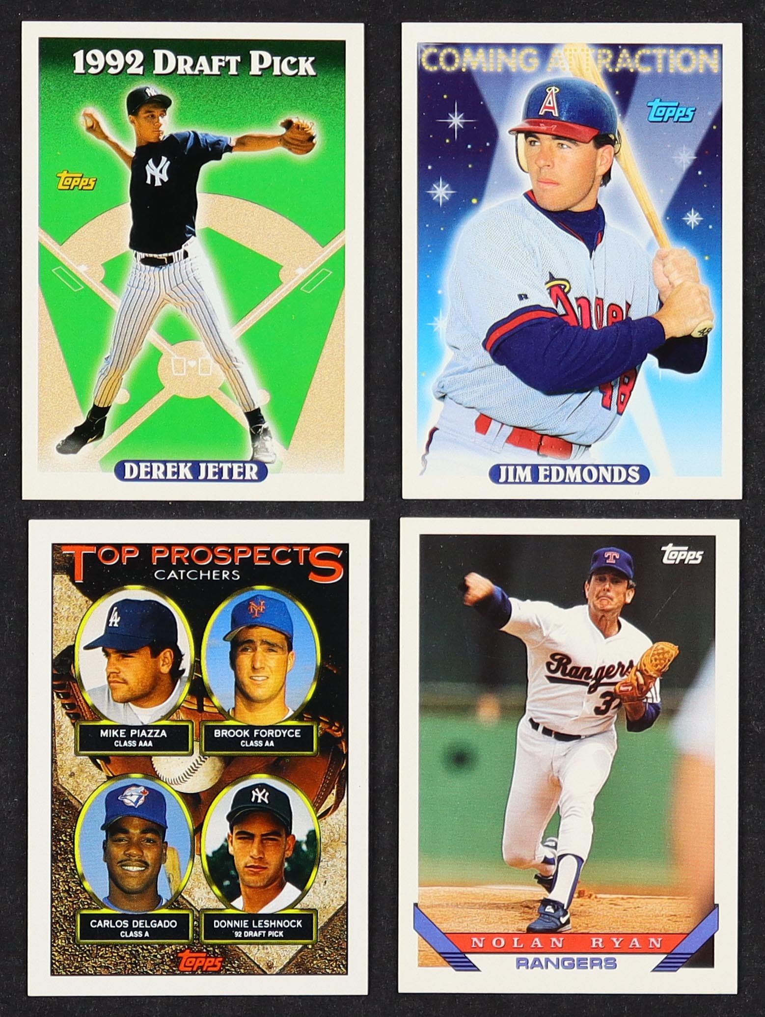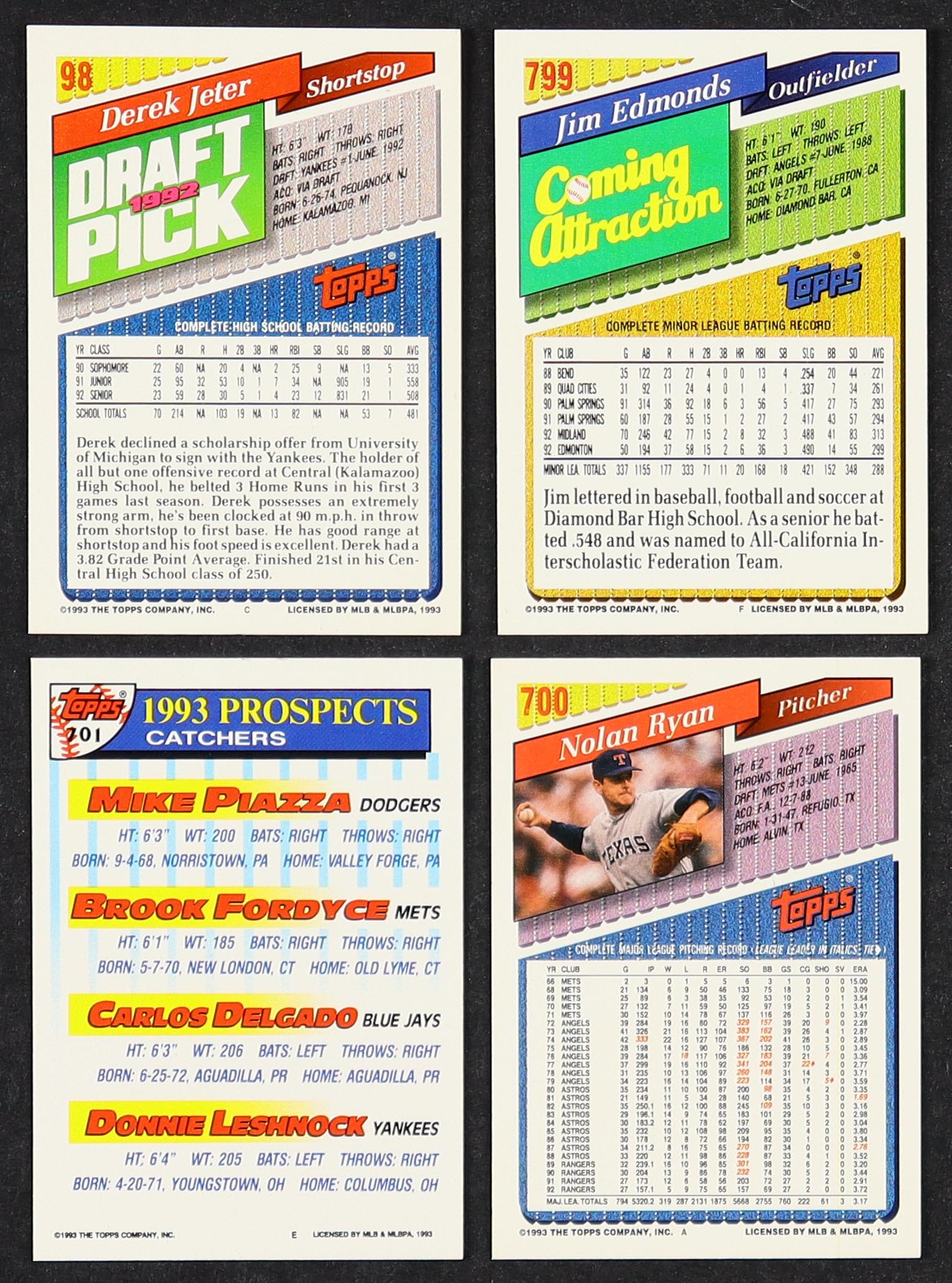 1993 Topps Baseball Complete Set of (825) Cards with Derek Jeter #98 RC, Mike Piazza / Brook Fordyce / Carlos Delgado / Donnie Leshnock #701, Nolan Ryan #700, Jim Edmonds #799 RC
