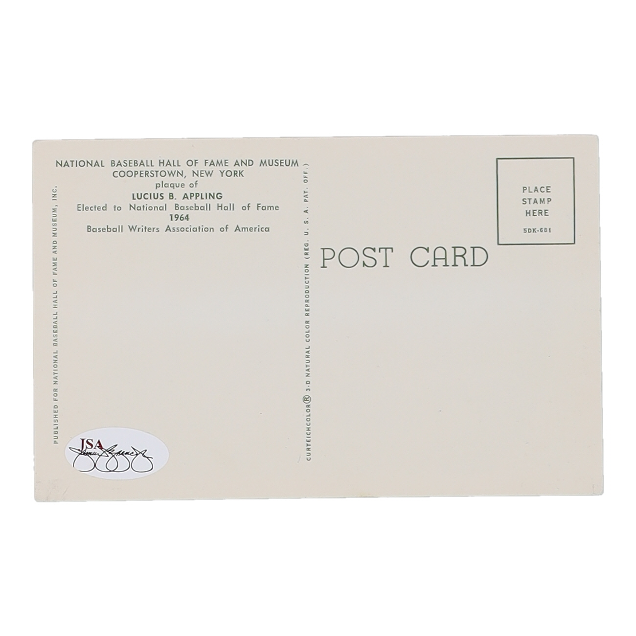 National Baseball Hall of Fame postcard has been hand-signed by Luke Appling (D.1991, Chicago White Sox, HOF).