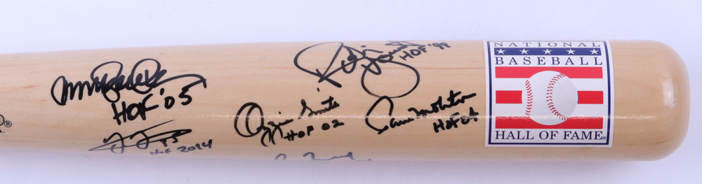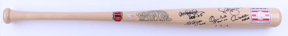 Hall of Fame Commemorative Cooperstown Baseball Bat has been hand-signed and inscribed by (7) with Greg Maddux, Ryne Sandberg, Ozzie Smith, Rod Carew, Frank Thomas, Paul Molitor and Robin Yount.