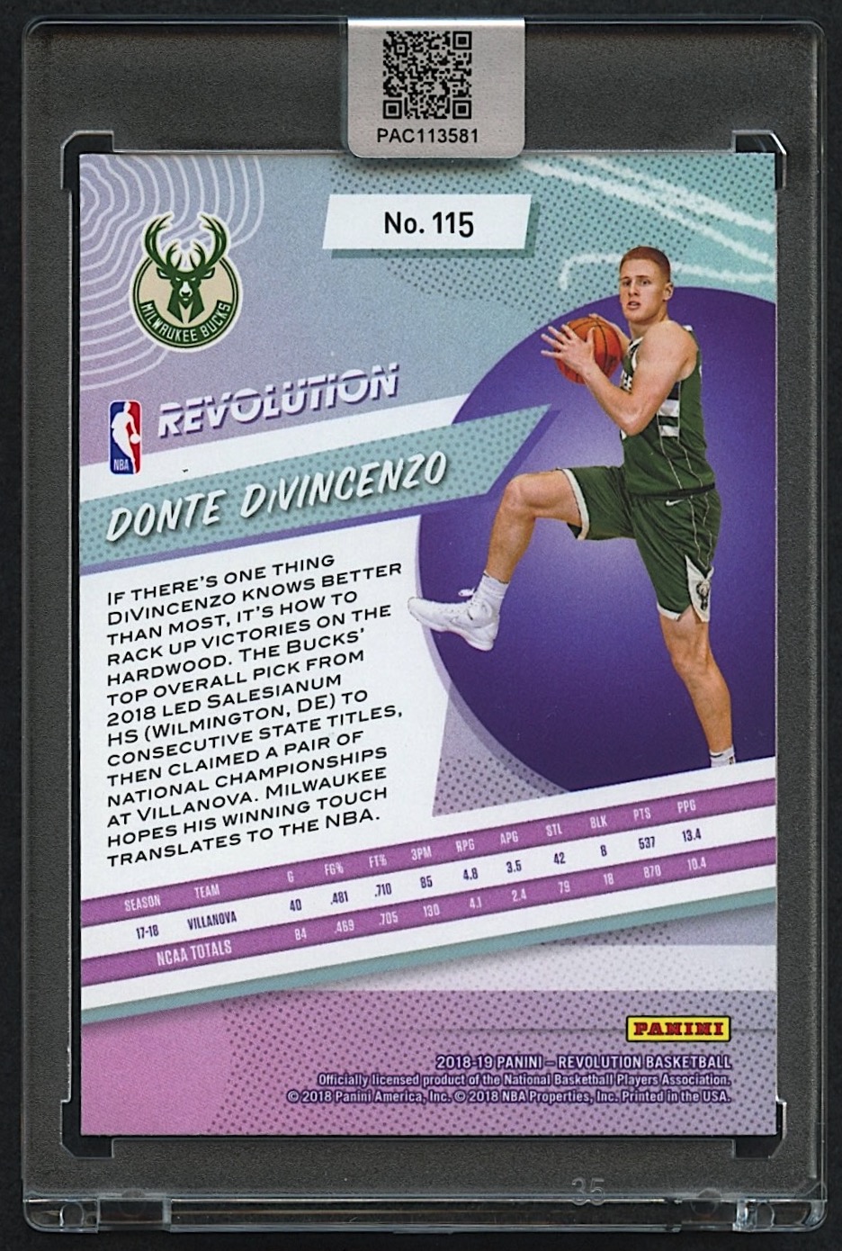Donte DiVincenzo Signed 2018-19 Panini Revolution #115 RC (PA Encapsulated)