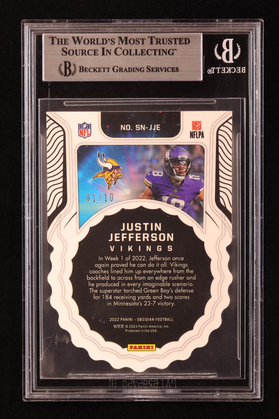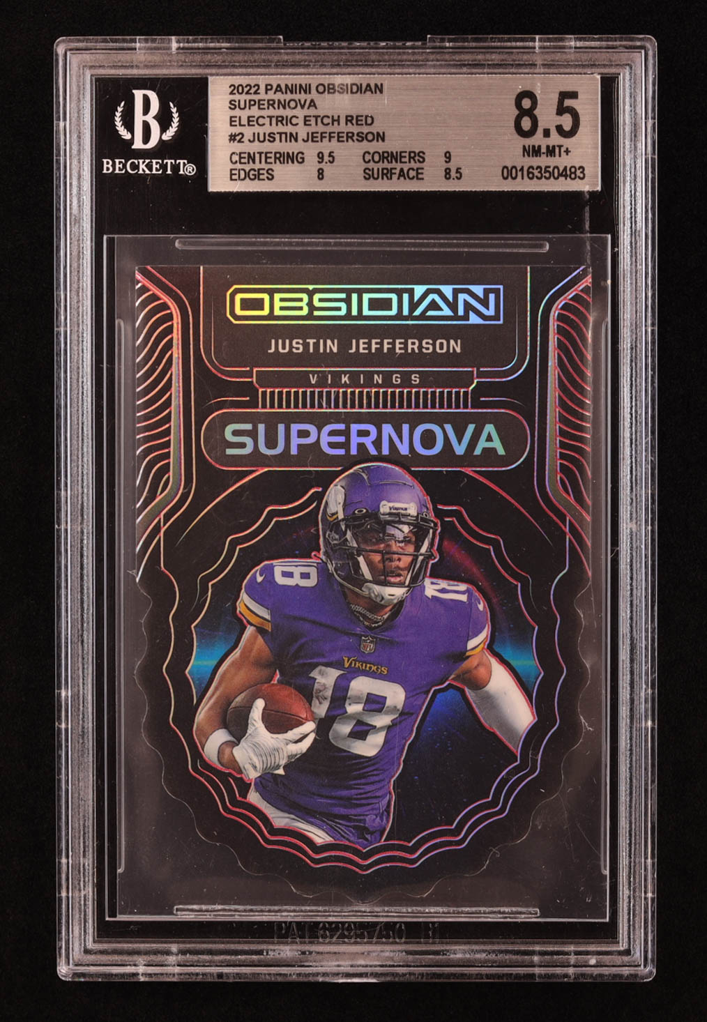 Justin Jefferson 2022 Panini Obsidian Supernova Electric Etch Red #2 #01/10 (BGS 8.5)