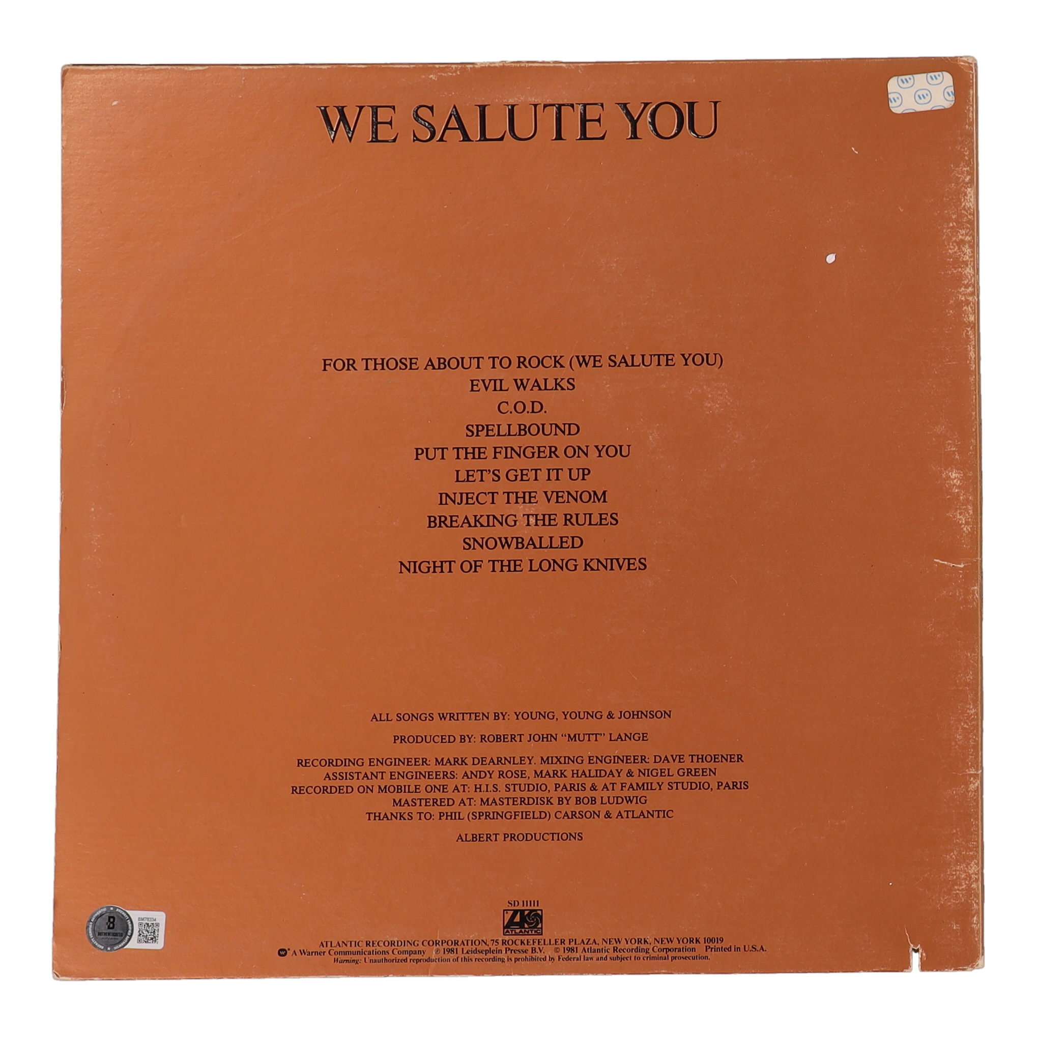 Phil Rudd Signed AC/DC "For Those About Rock" Vinyl Record Album Cover Inscribed "AC/DC" (Beckett)