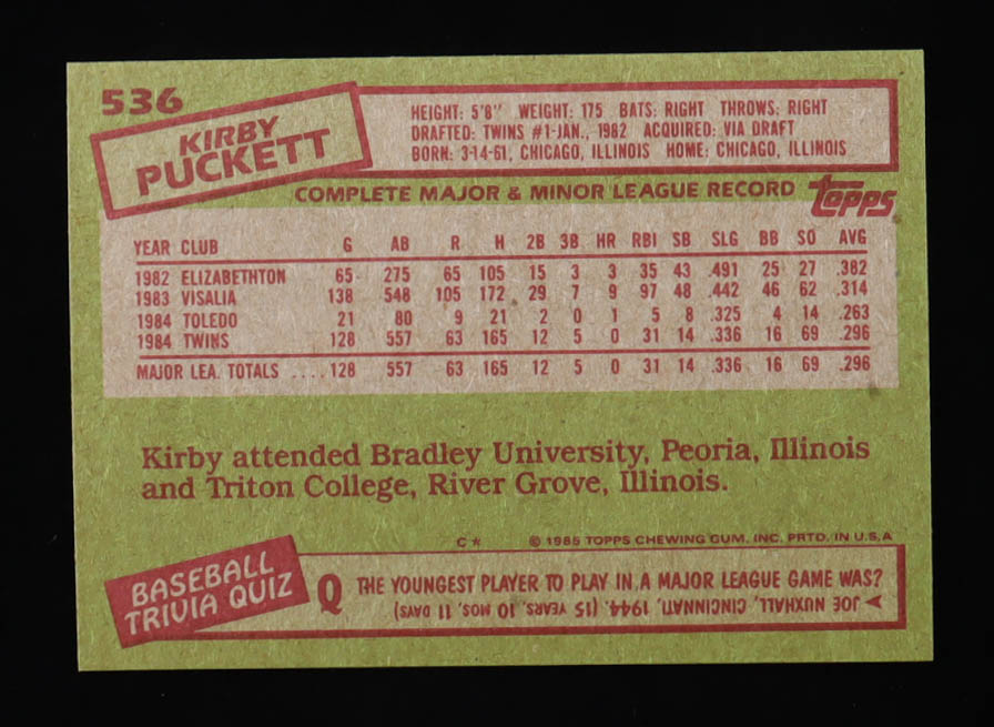 Kirby Puckett 1985 Topps #536 RC