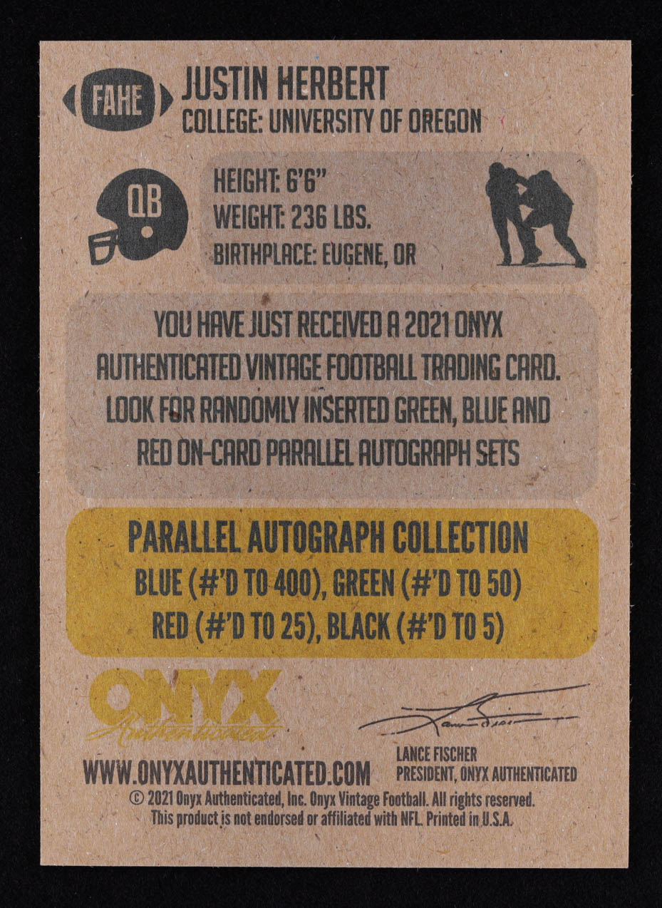 Justin Herbert 2021 Onyx Vintage Signatures Red #FAHE