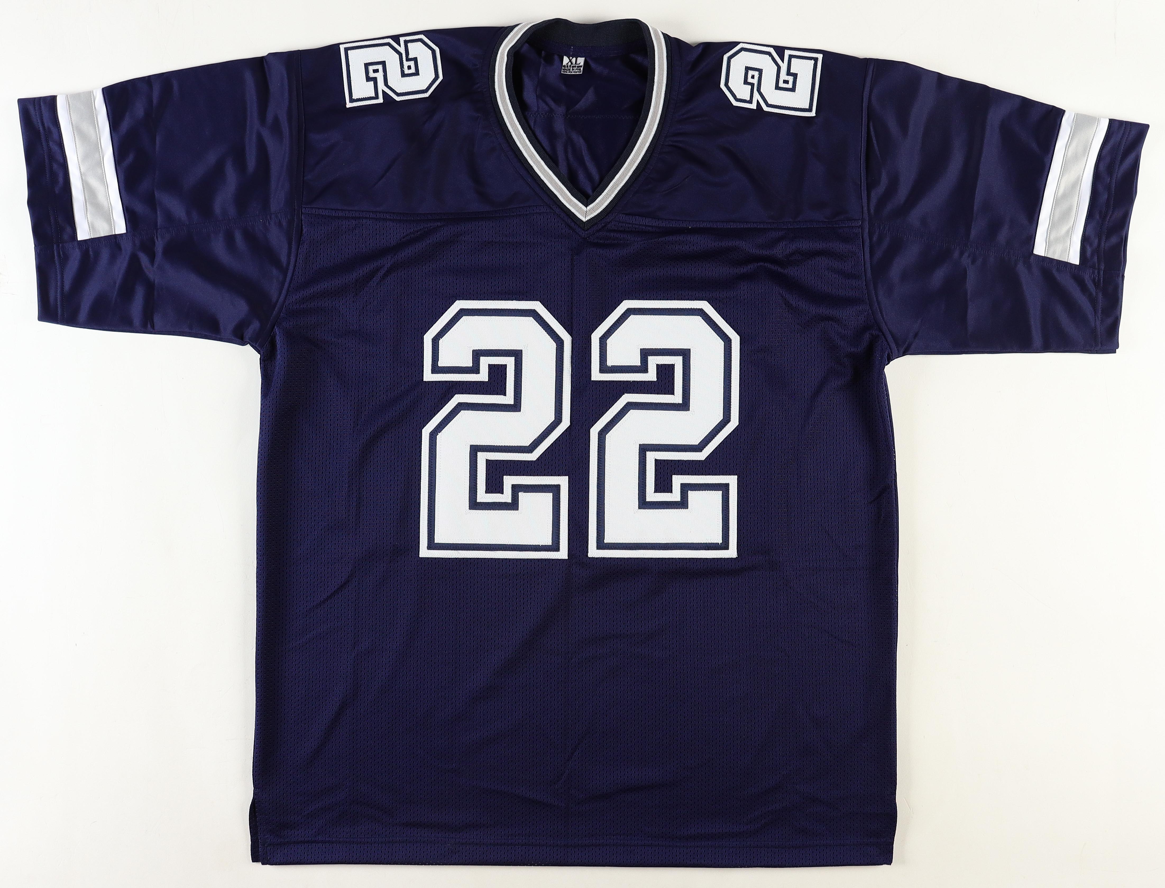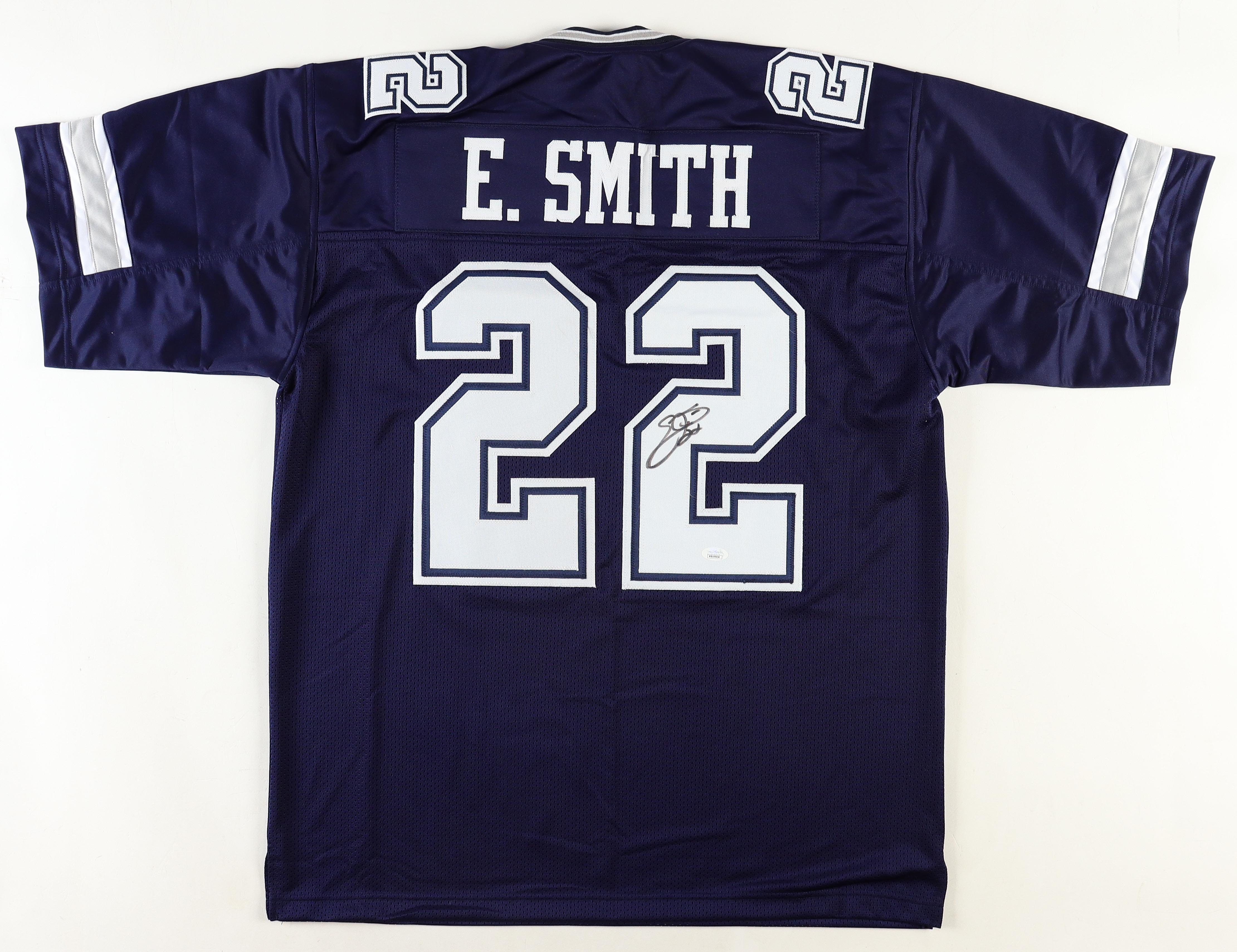 Custom jersey. Everything sewn on, size XL. Hand-signed by Emmitt Smith (HOF).