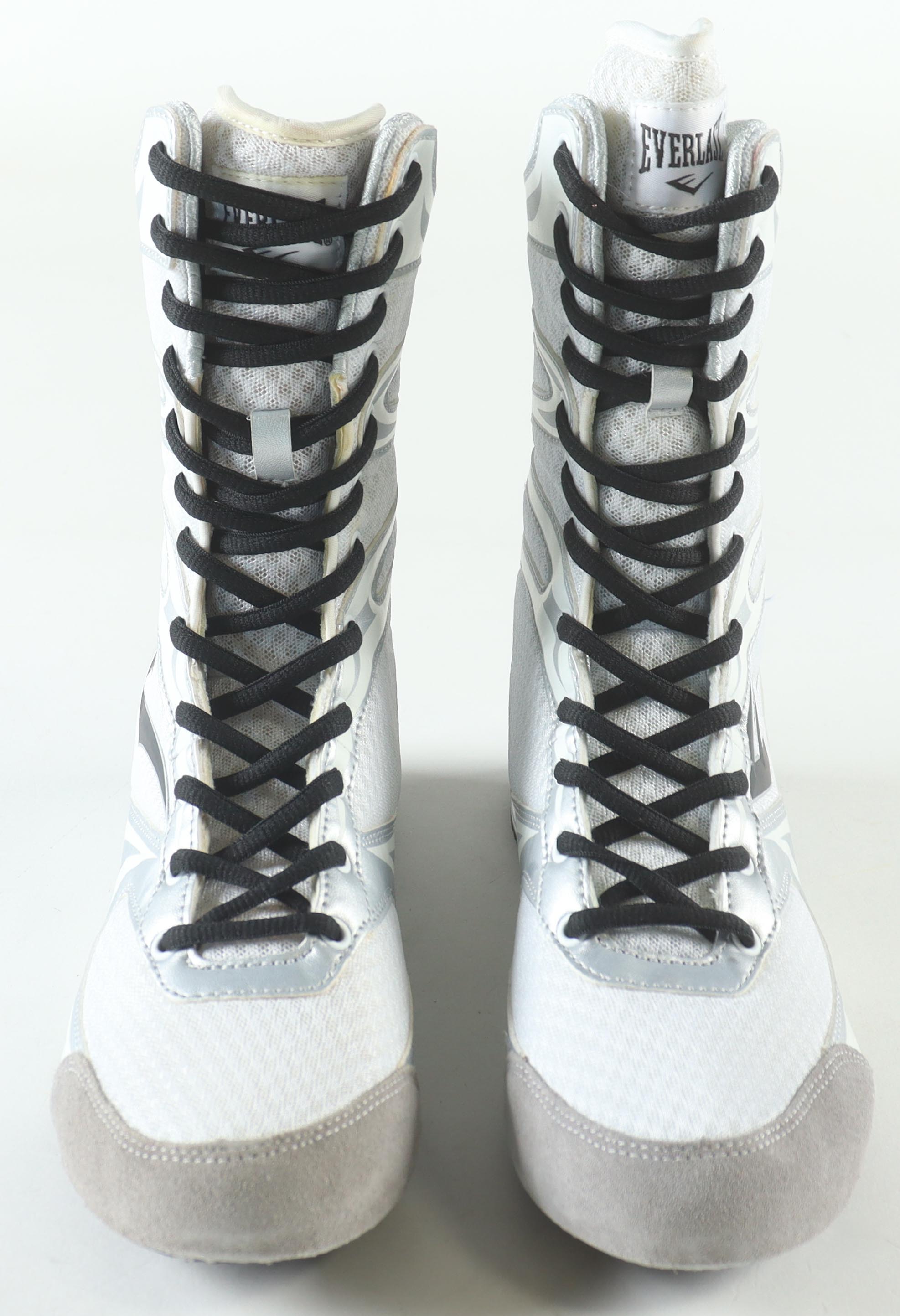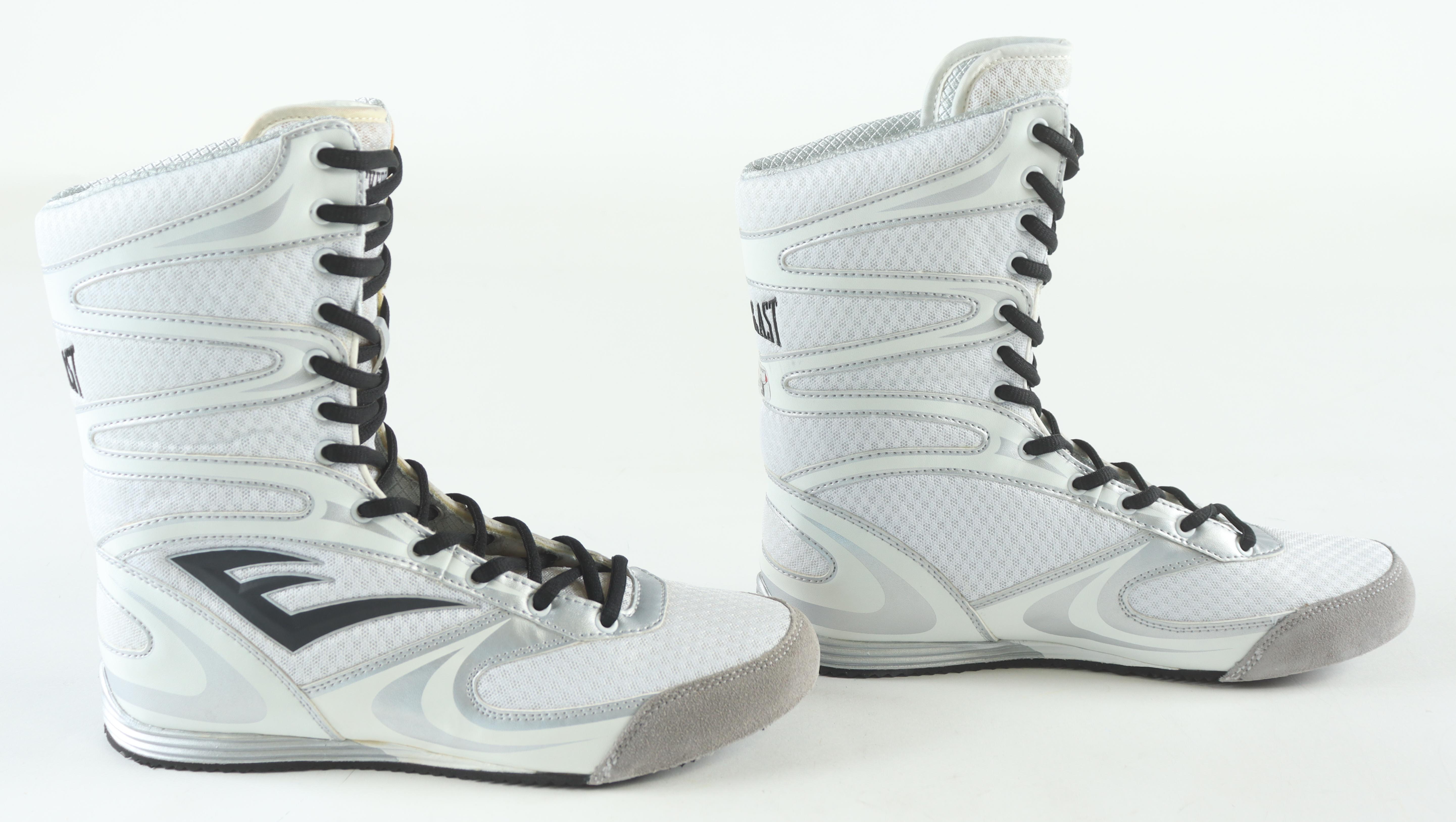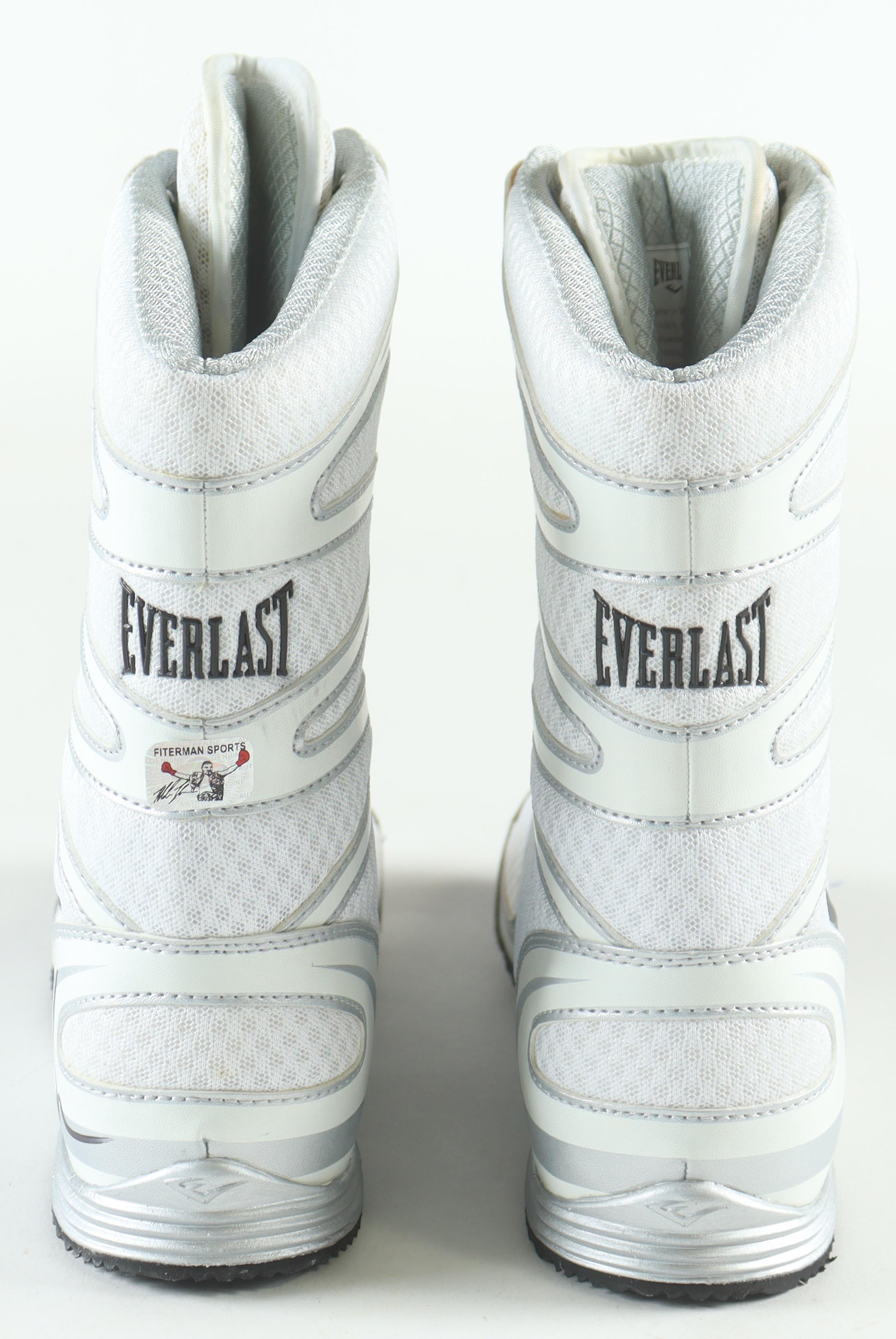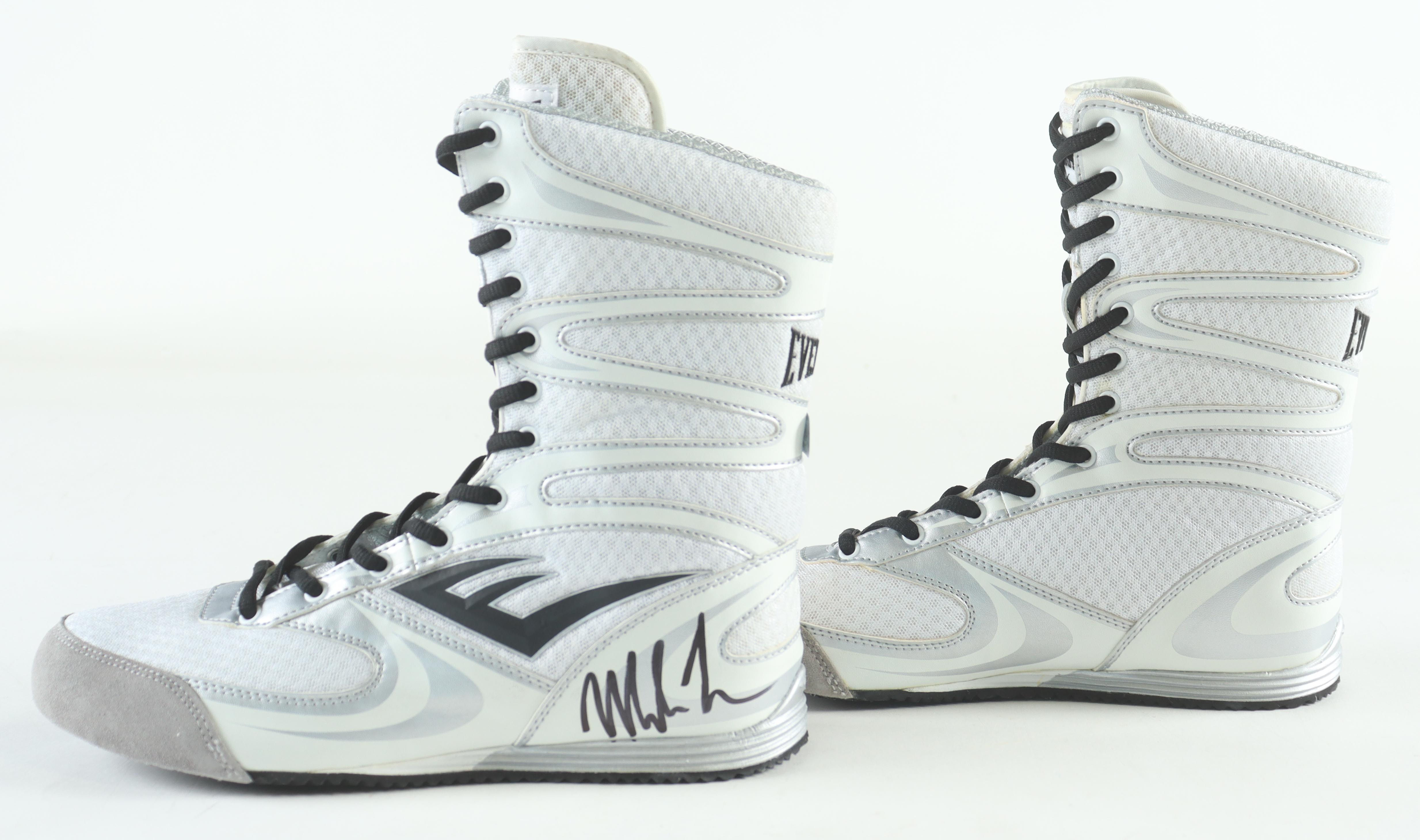 Pair of (2) Everlast professional boxing boots. The left boot has been hand-signed by Mike Tyson (HOF).