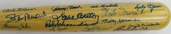 Baseball Hall of Famers & Stars Rawlings Baseball Bat Signed By (35+) with Robin Roberts, Brooks Robinson, Ernie Banks, Carl Yastrzemski, Ted Williams (JSA)