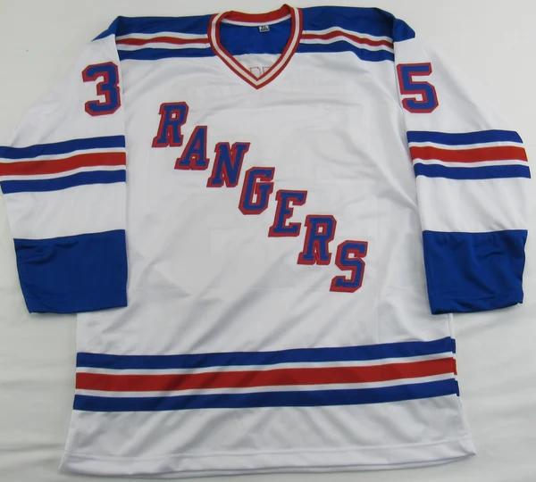 Custom style jersey with everything sewn on, size XL. Hand-signed and inscribed by Mike Richter.