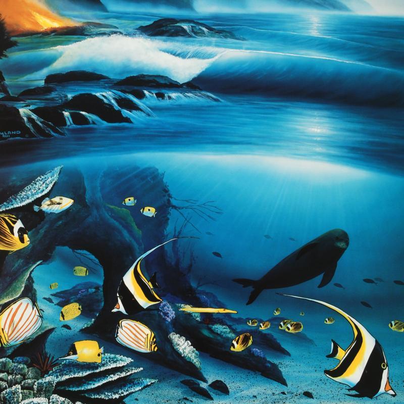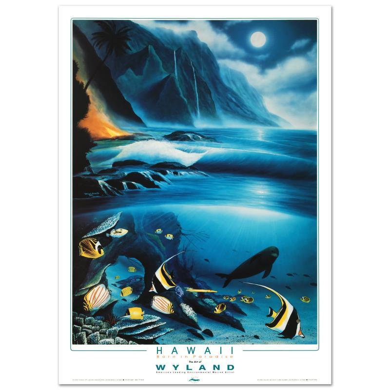 "Hawaii - Born in Paradise" is a poster by Wyland. Measures approx. 19" x 26" (image).