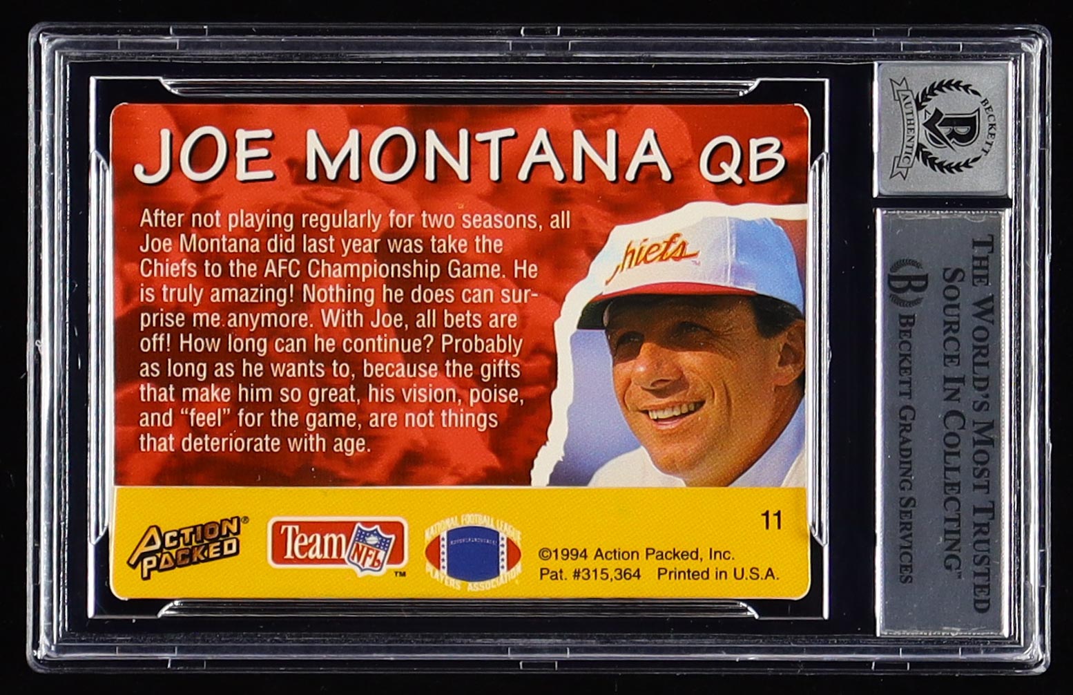 Joe Montana Signed 1994 Action Packed All-Madden #11 (BGS | Autograph Graded BGS 10)