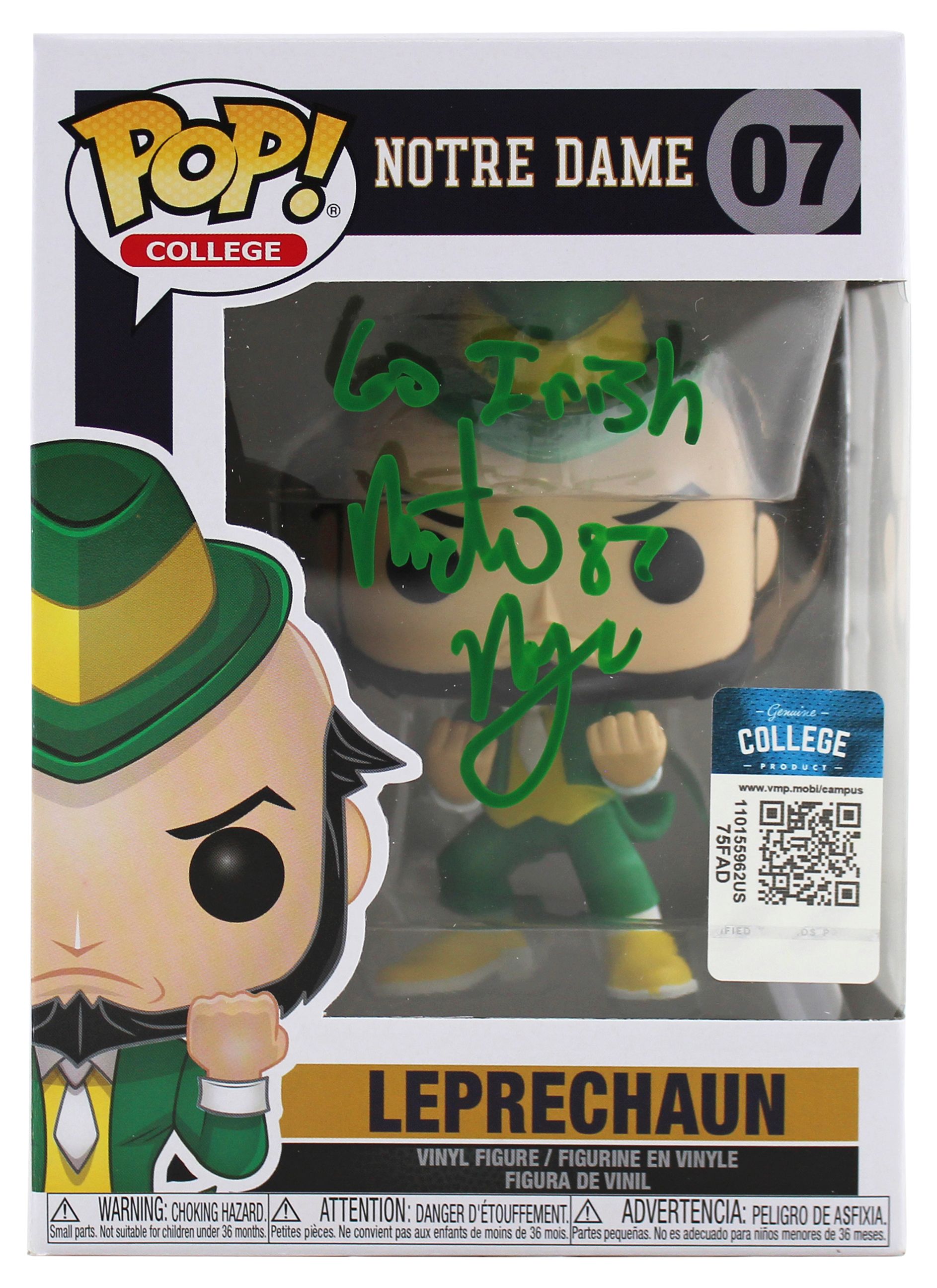 Michael Mayer Signed Notre Dame Fighting Irish #07 Leprechaun Funko Pop! Vinyl Figure Inscribed "Go Irish" (Beckett)