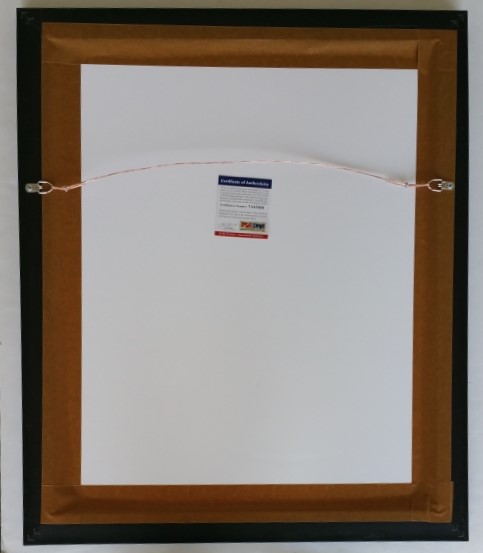 Custom framed canvas display measures 22" x 25" in size and has been hand-signed in black felt-tip pen by Al Pacino.