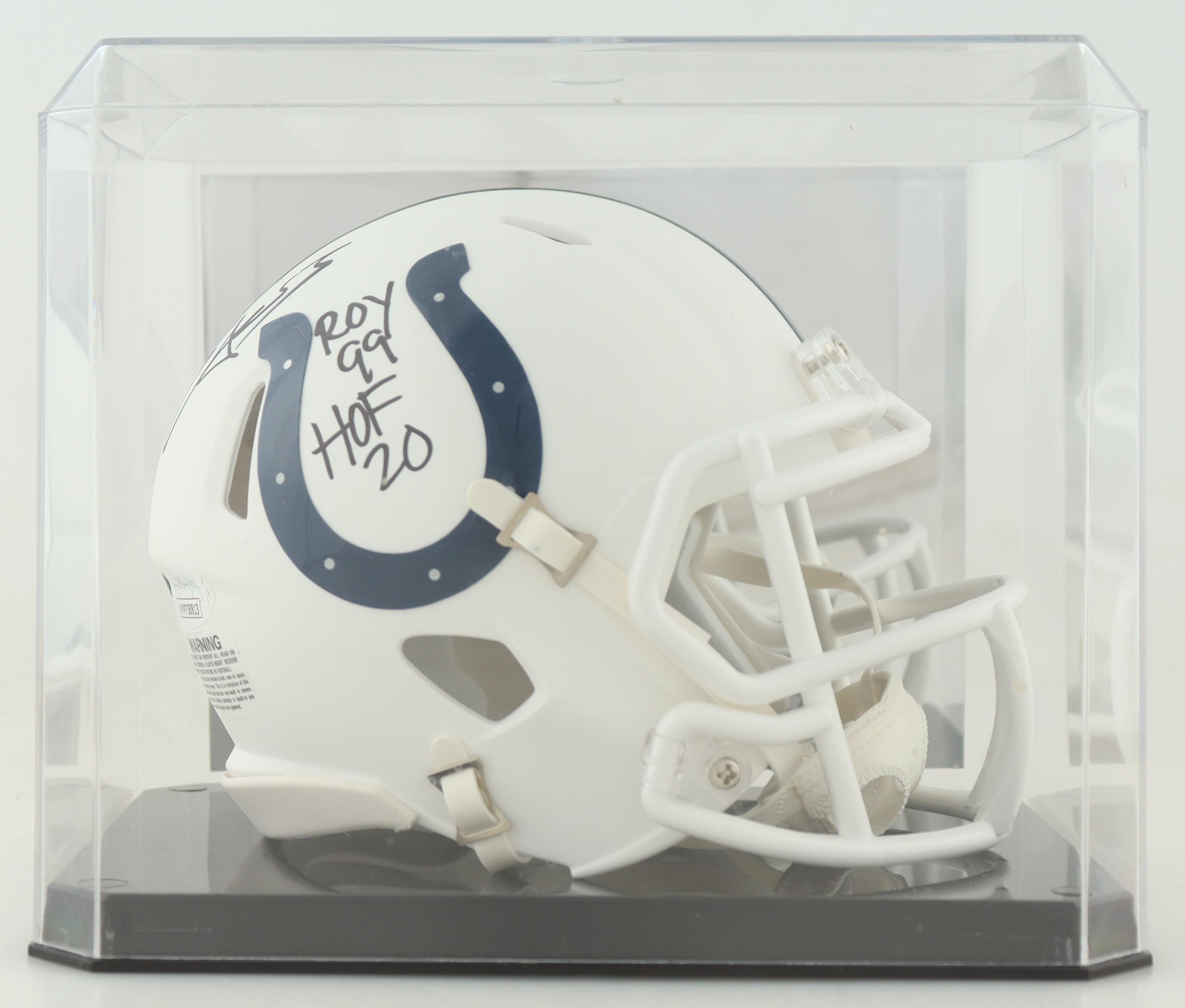 Edgerrin James Signed Colts Speed Mini Helmet Inscribed "HOF 20" & "ROY 99" with Display Case (JSA)