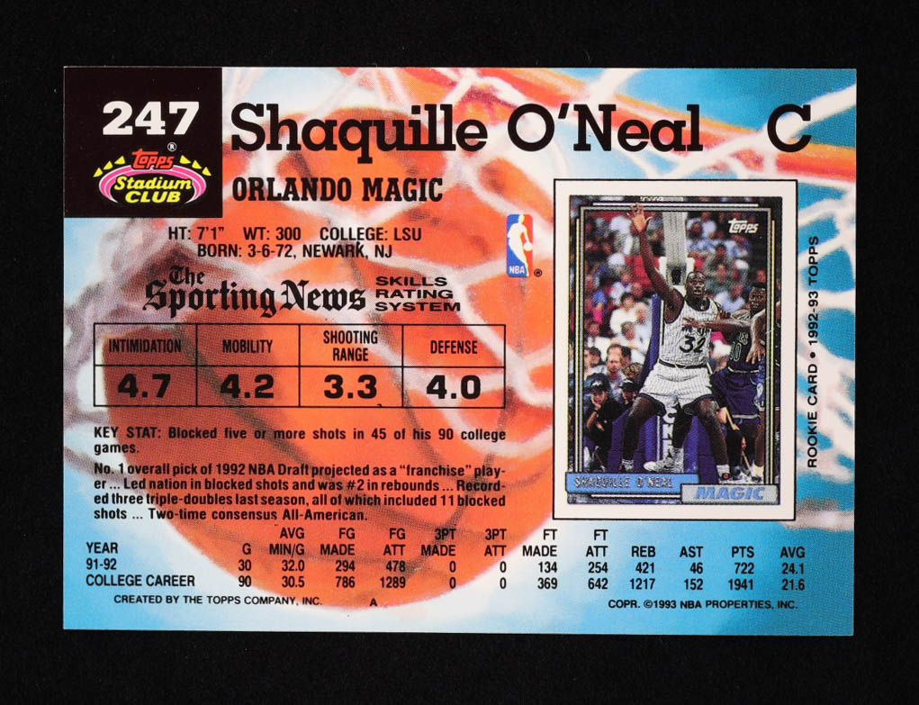 Shaquille O'Neal 1992-93 Stadium Club #247 RC
