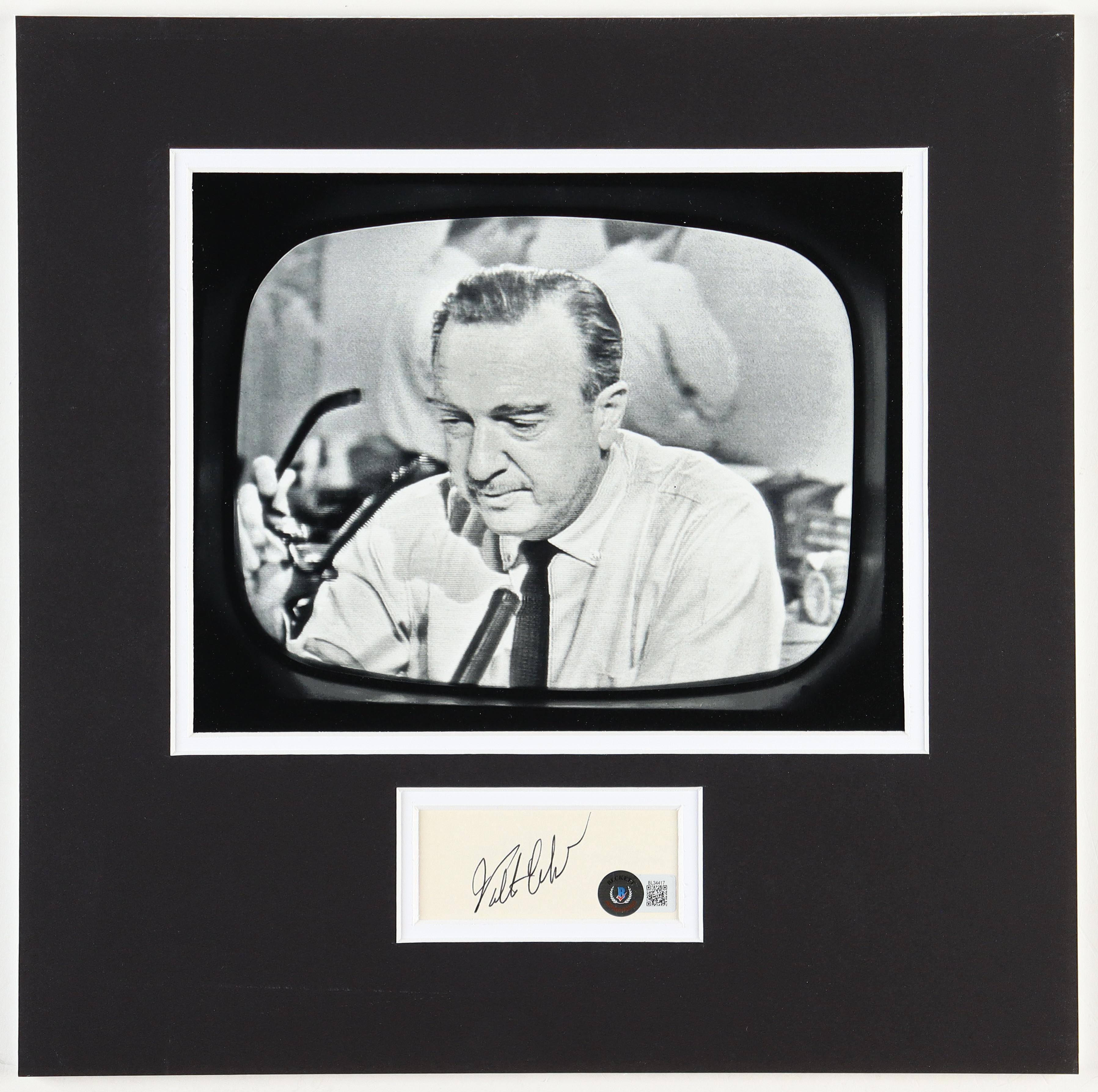 Walter Cronkite Signed 14x14 Custom Matted Cut Display (Beckett)