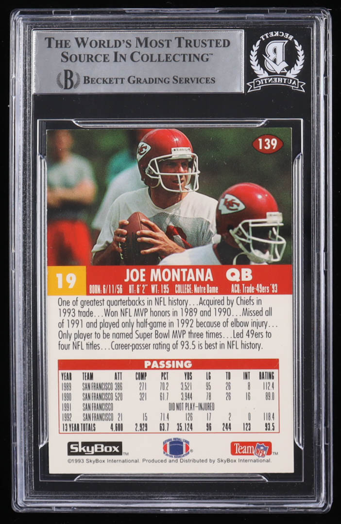 Joe Montana Signed 1993 SkyBox Impact #139 (BGS)