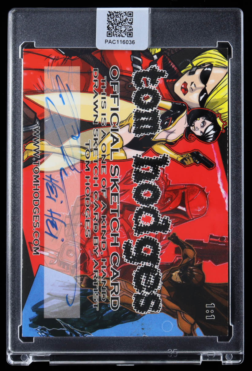 This original sketch card includes original art by renowned comic book artist, Tom Hodges. Also includes a character name inscription on the back by the artist.