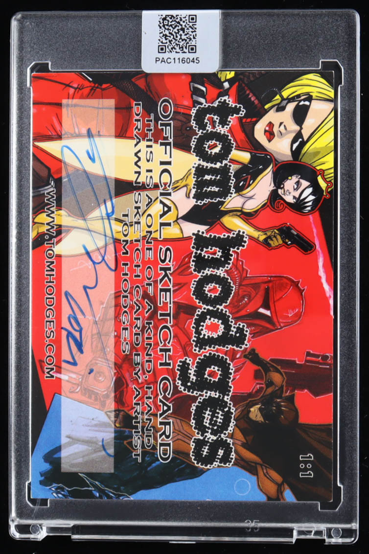 This original sketch card includes original art by renowned comic book artist, Tom Hodges. Also includes a character name inscription on the back by the artist.