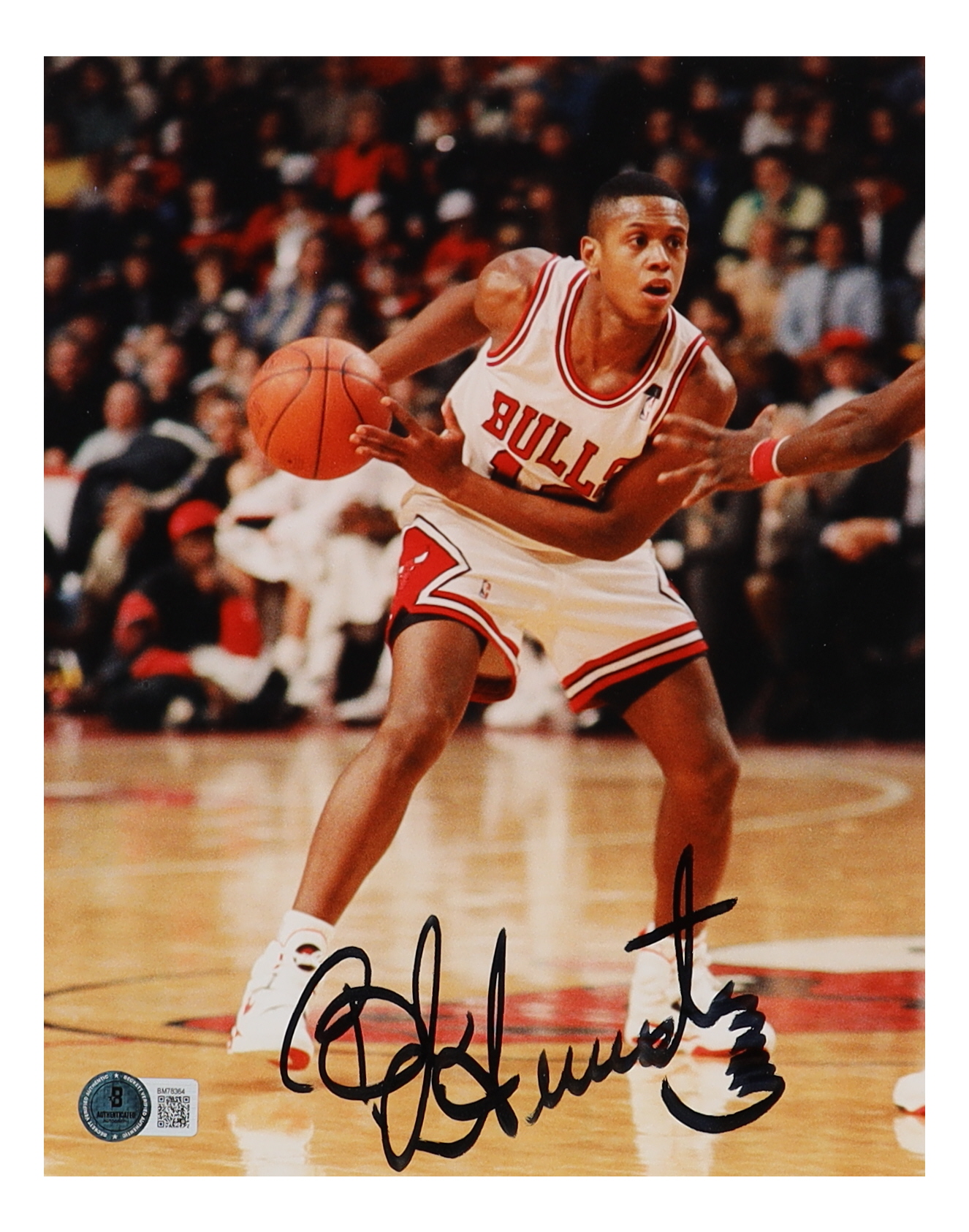 Photo measures 8" x 10" in size and has been hand-signed by B. J. Armstrong (Chicago Bulls).