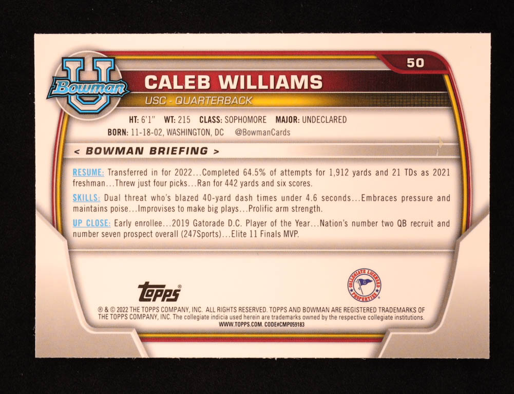 Caleb Williams 2022 Bowman Chrome University #50 RC