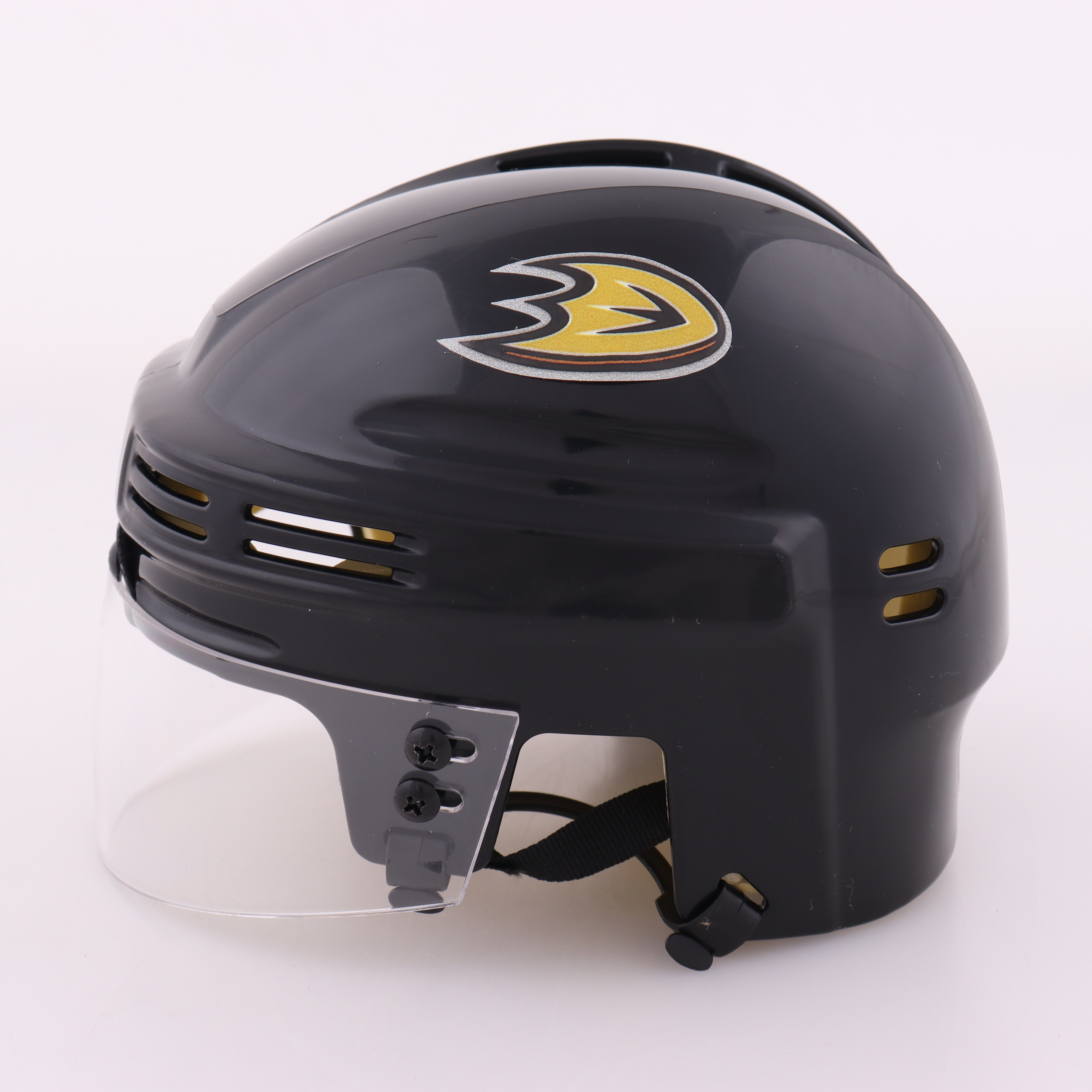 Anaheim Ducks hockey mini helmet. Hand-signed by Trevor Zegras.