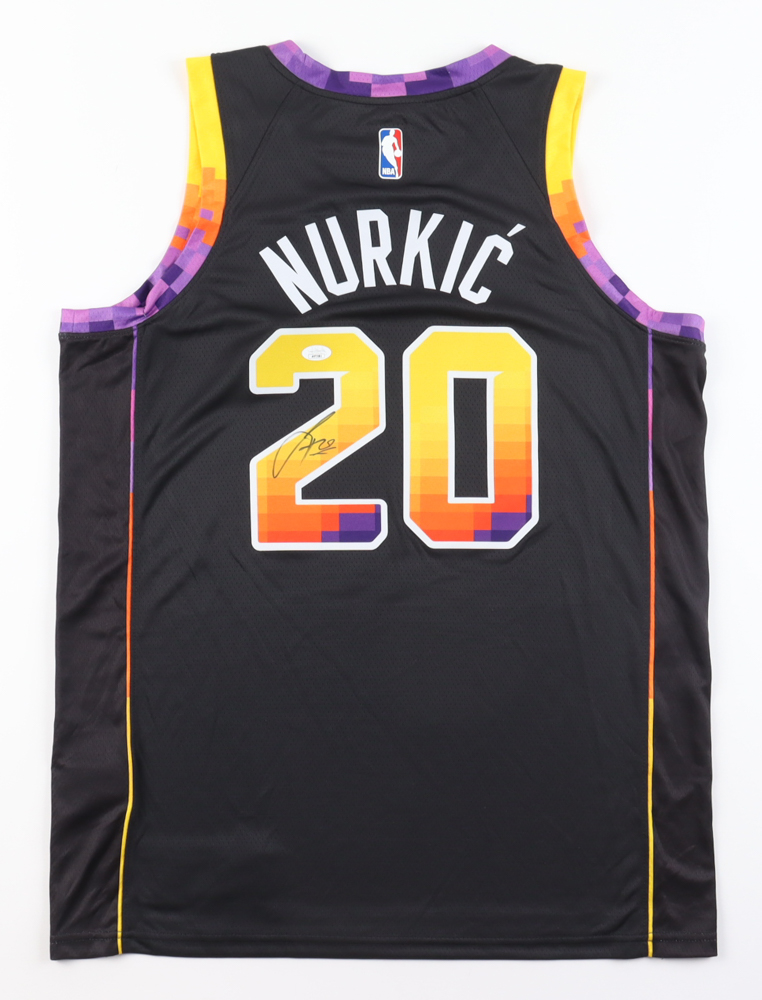 Jordan jersey with everything pressed on, size 48. Jersey has been hand-signed by Jusuf Nurkic.