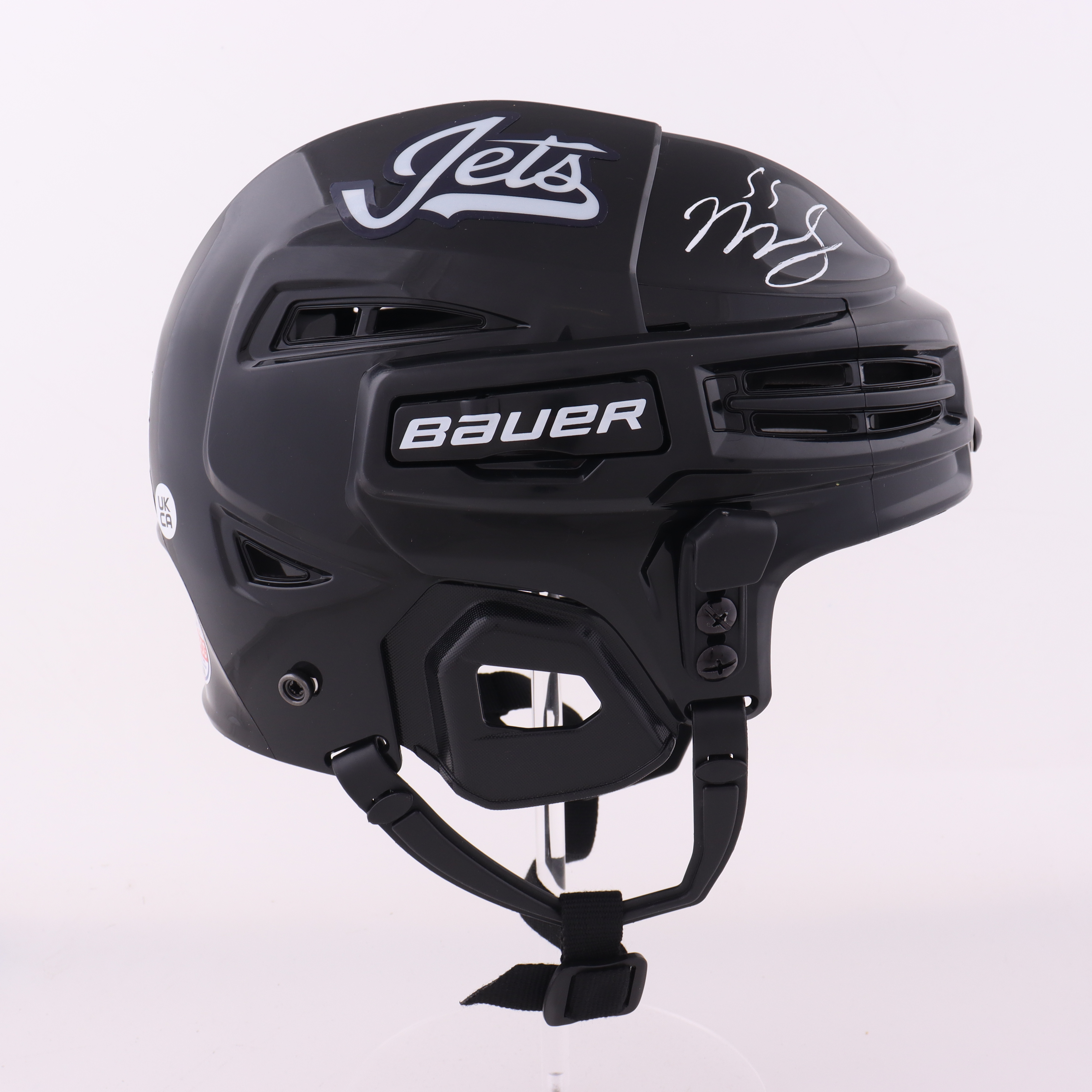 Bauer Winnipeg Jets Full-Size Authentic Hockey Helmet. Hand-signed by Mark Scheifele.