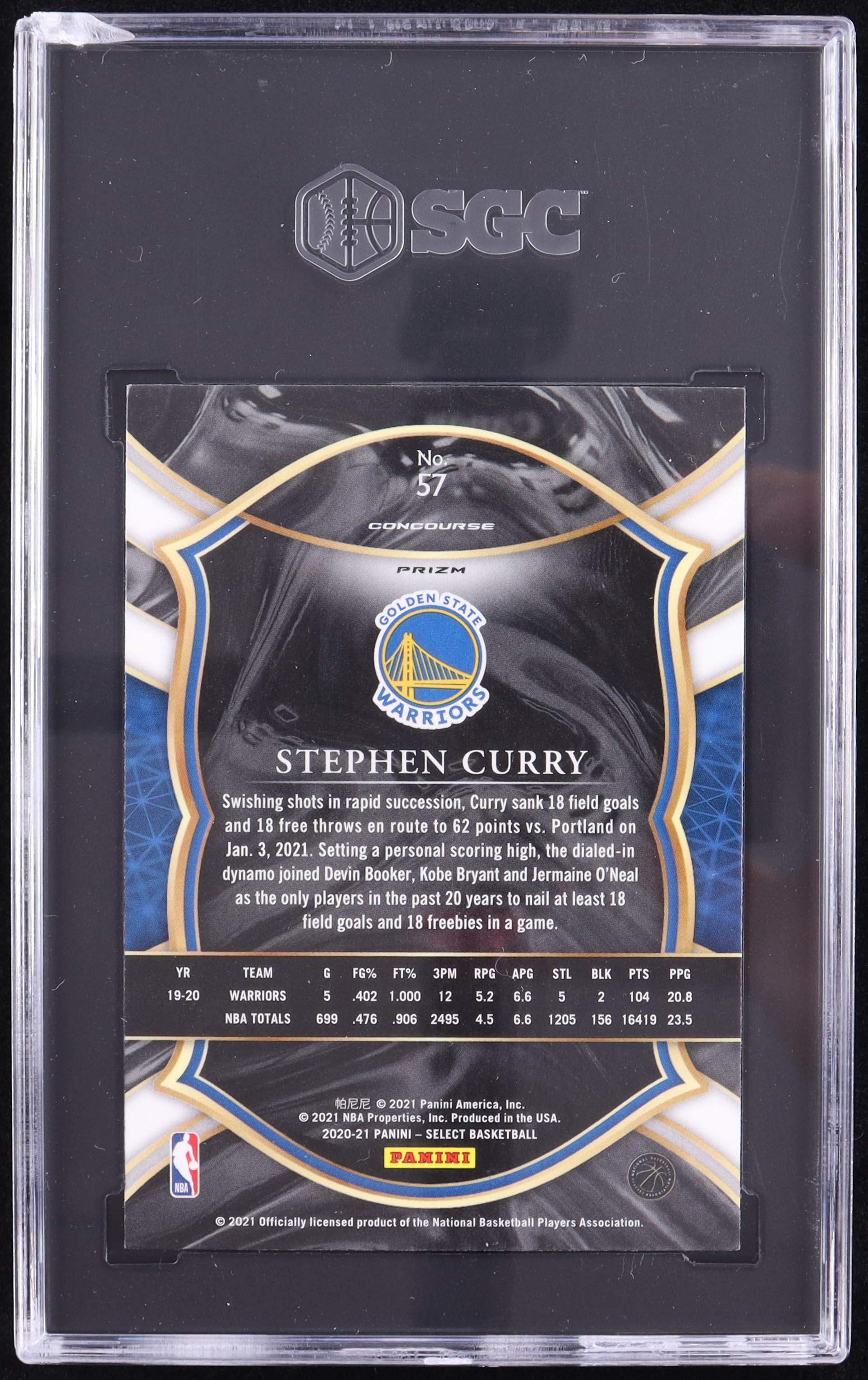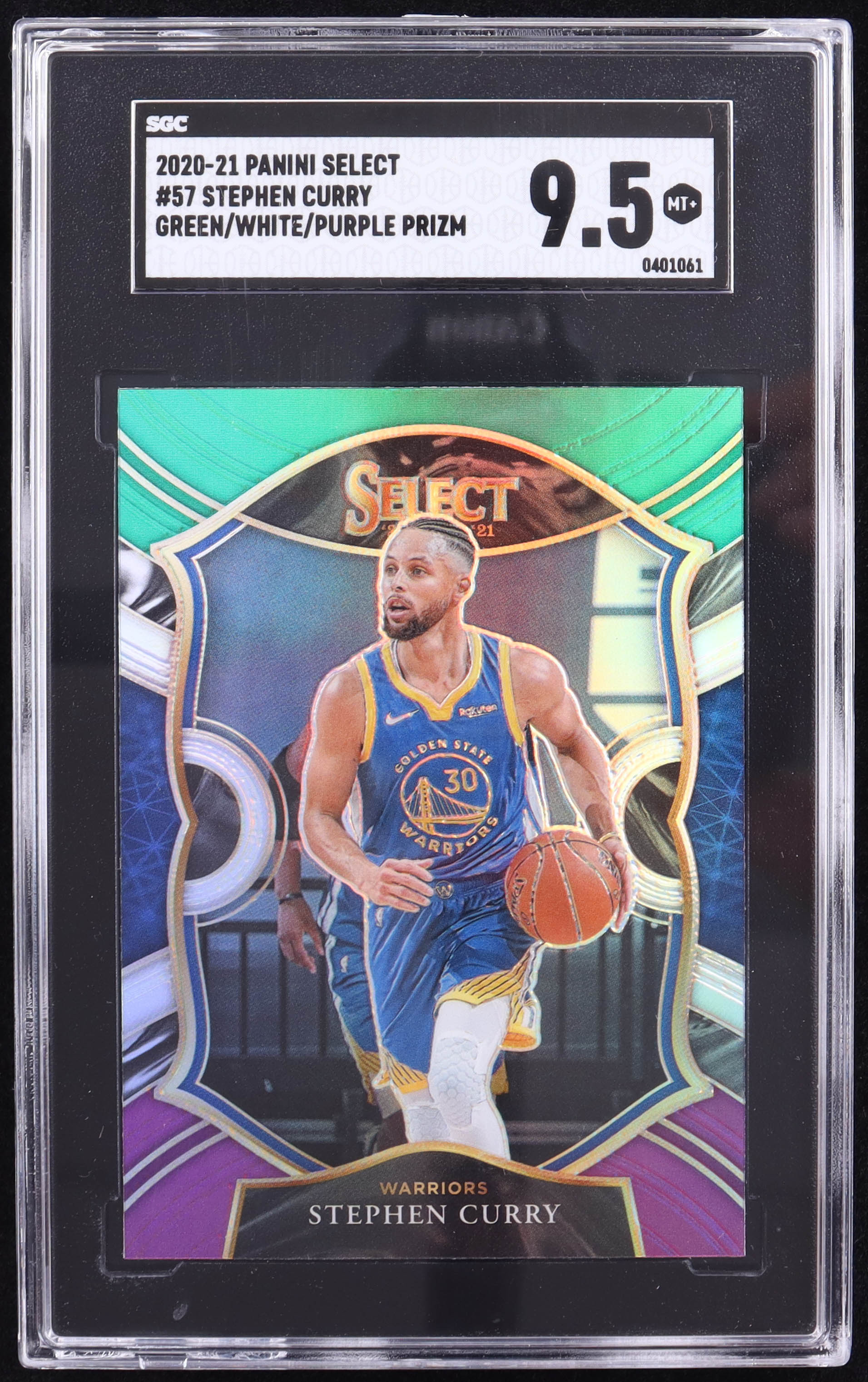 Stephen Curry 2020-21 Select Prizms Green White Purple #57 (SGC 9.5)